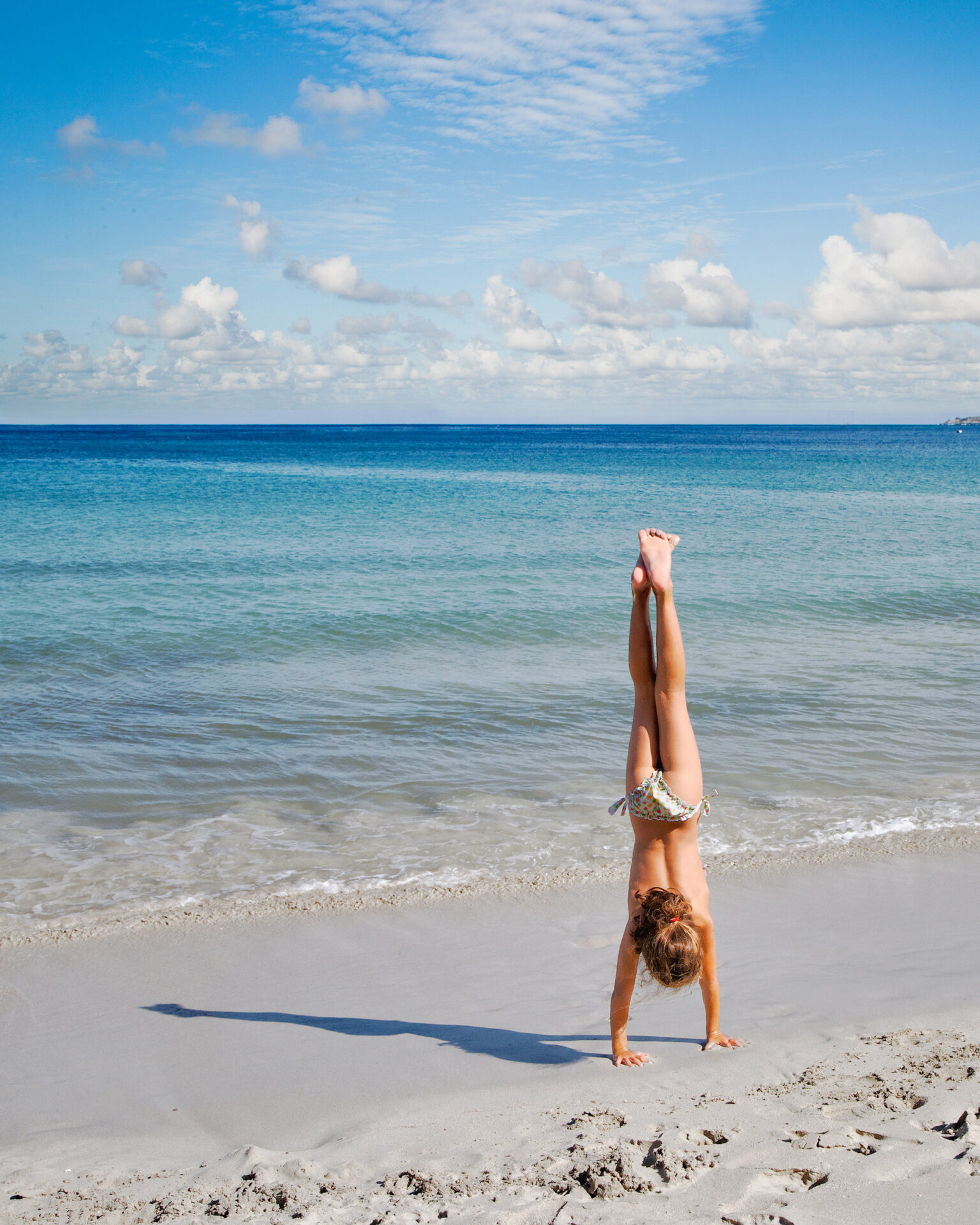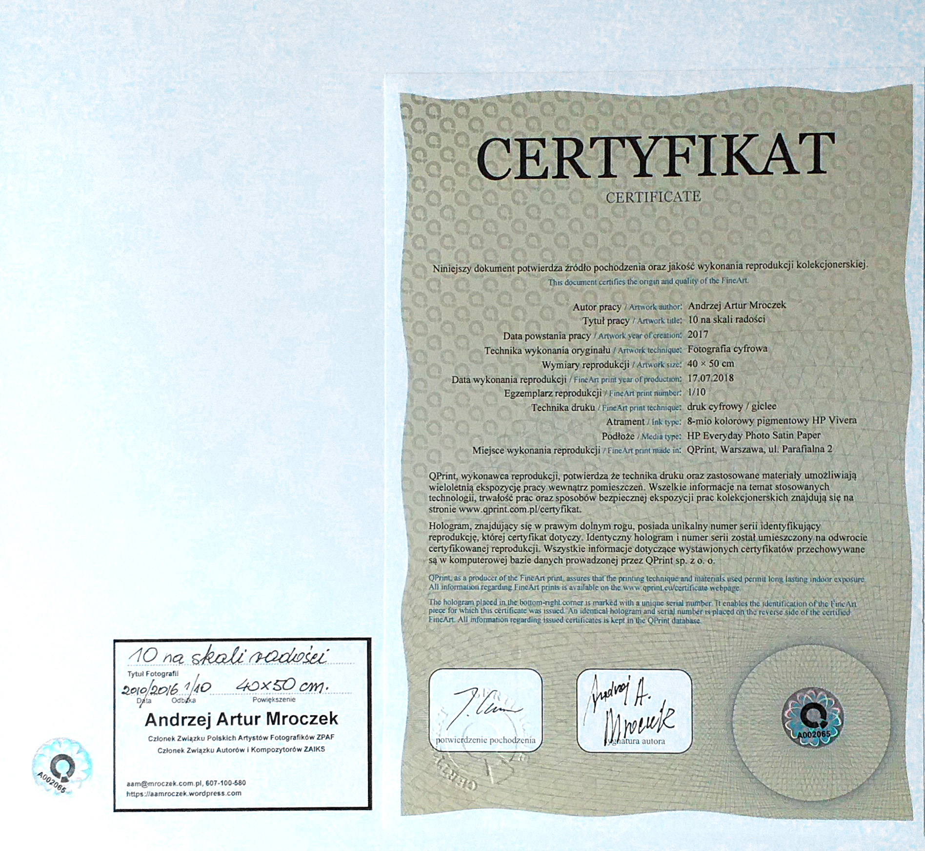 Fotografia złożona z dwóch zdjęć, które zrobione zostały w różnych miejscach, różnymi aparatami i w różnym czasie. Zdjęcie dziewczynki robiącej stójkę na rękach zrobione zostało nad Morzem Śródziemnym na Sycylii we Włoszech, zdjęcie nieba w Polsce nad Bałtykiem, z plaży w Karwii. Pierwsze w roku 2010, aparatem Canon EOS 30D, drugie kilka lat później, w roku 2016, aparatem Canon EOS 7D Mark II, tylko obiektyw ten sam Canon EF 24-105 mm f/4.0L IS USM. Pierwsze zdjęcie zostało zrobione przypadkowo, przechodziłem po plaży, zobaczyłem gimnastykującą się dziewczynkę, sfotografowałem ją w momencie gdy stała w pionie na rękach i poszedłem dalej. Na zdjęcie zwróciłem dopiero większą uwagę w roku 2017 i spodobało mi się, ale byłoby lepsze, gdyby było w kadrze pionowym, a zrobiłem go trzymają aparat poziomo – trzeba było dosztukować niebo ponad horyzontem. Znalazłem takie, pasujące barwą do koloru morza i tak powstała ta fotografia. Została wydrukowana w Qprint na podłożu HP Everyday Photo Satin Paper z zastosowaniem technologii druku giglée, atramentem 8-kolorowym, pigmentowym HP Vivera co gwarantuje najwyższą trwałość kolorów fotografii. Do fotografii dołączony jest certyfikat jakości. Fotografia w limitowanej serii 10 sztuk, oferowana jest pierwszą z serii.