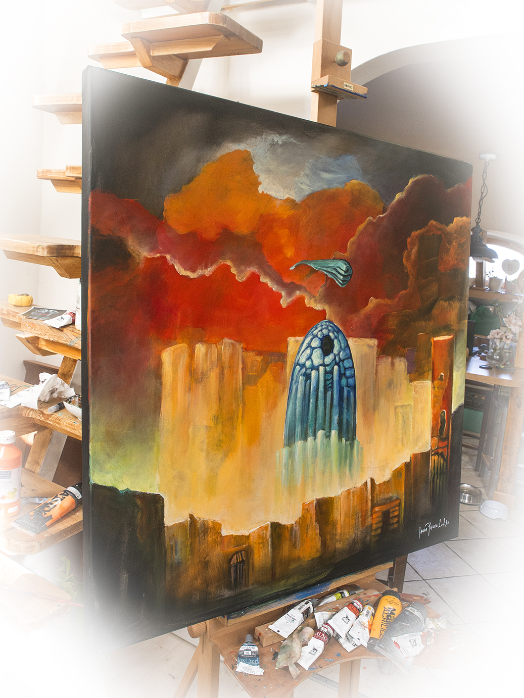Obraz akrylowy na płótnie bawełnianym 322gr/m2 farby Maxi Acril Renesans i Maimeri Praca werniksowana z filtrem UVRozmiar 100x100x3,5