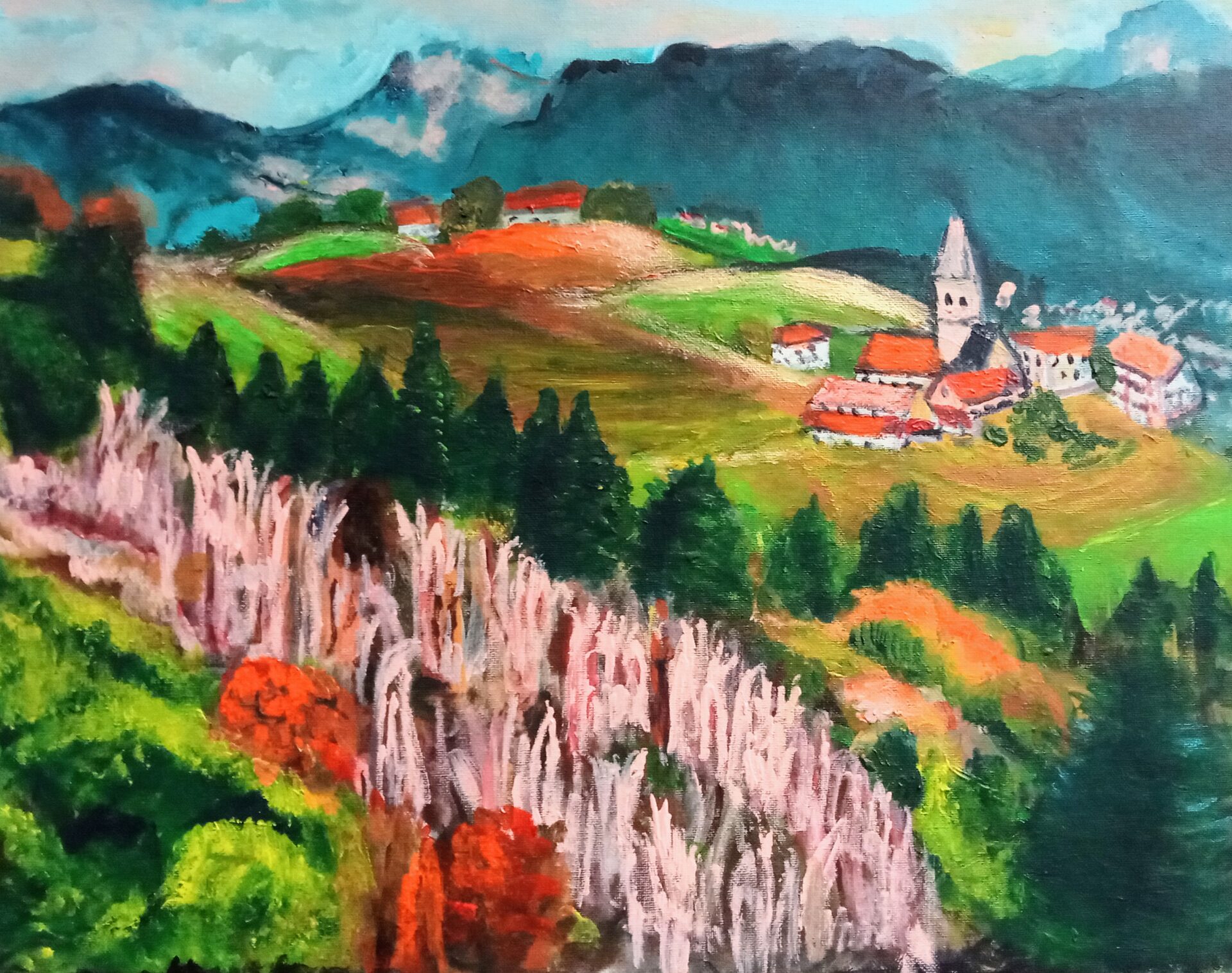 Obraz akrylowy ręcznie malowany na płótnie naciągniętym na bjetram drewniany.