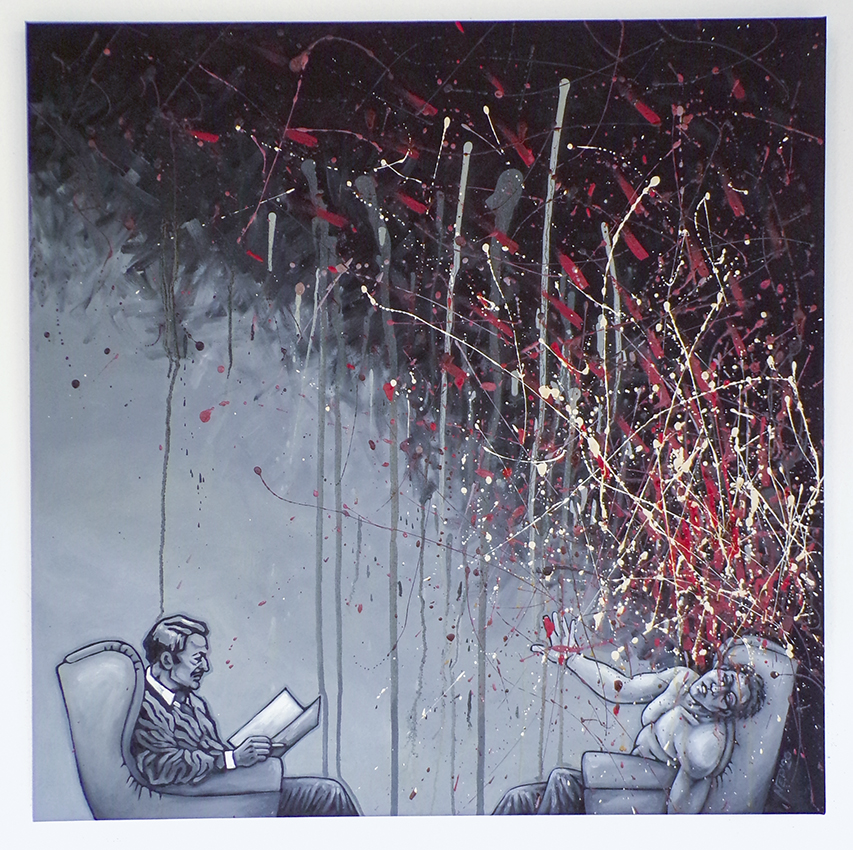Wizyta u specjalisty od zagadek umysłu może być bardzo oczyszczająca… Pacjent jest sam na sam, w niedużym pomieszczeniu, z obcym sobie człowiekiem… a celem spotkania jest próba wyrzucenia z siebie wszystkich demonów. „Terapia” to bardzo sugestywne ale i nieco żartobliwe podejście do tego tematu. Obraz surowy, bez ramy.