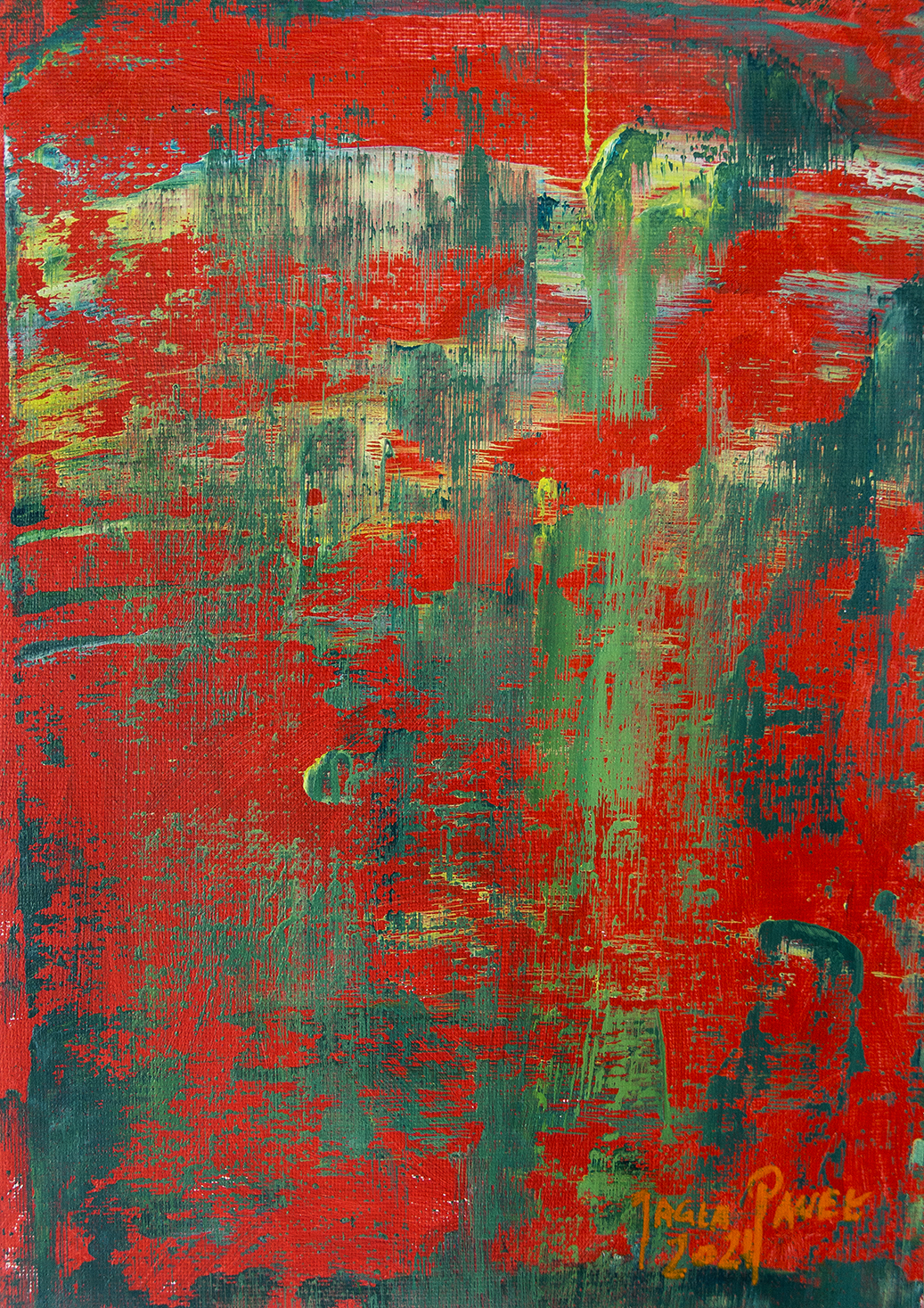 Praca wykonana na arkuszu płótna A4 gramatura 280gr. farbami akrylowymi „Renesans” ,” Amsterdam”Praca oprawiona autorska AFRP Paweł Jagła sygnowana z przodu i tyłu.Wymiar Ramki: 29,5 x 36,5 cm