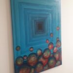 Obraz namalowany farbą akrylową na płótnie o wymiarach 70 x 90 cm. Boki obrazu są zamalowane więc obraz nie wymaga oprawy. Sygnowany na rewersie i zabezpieczony werniksem.