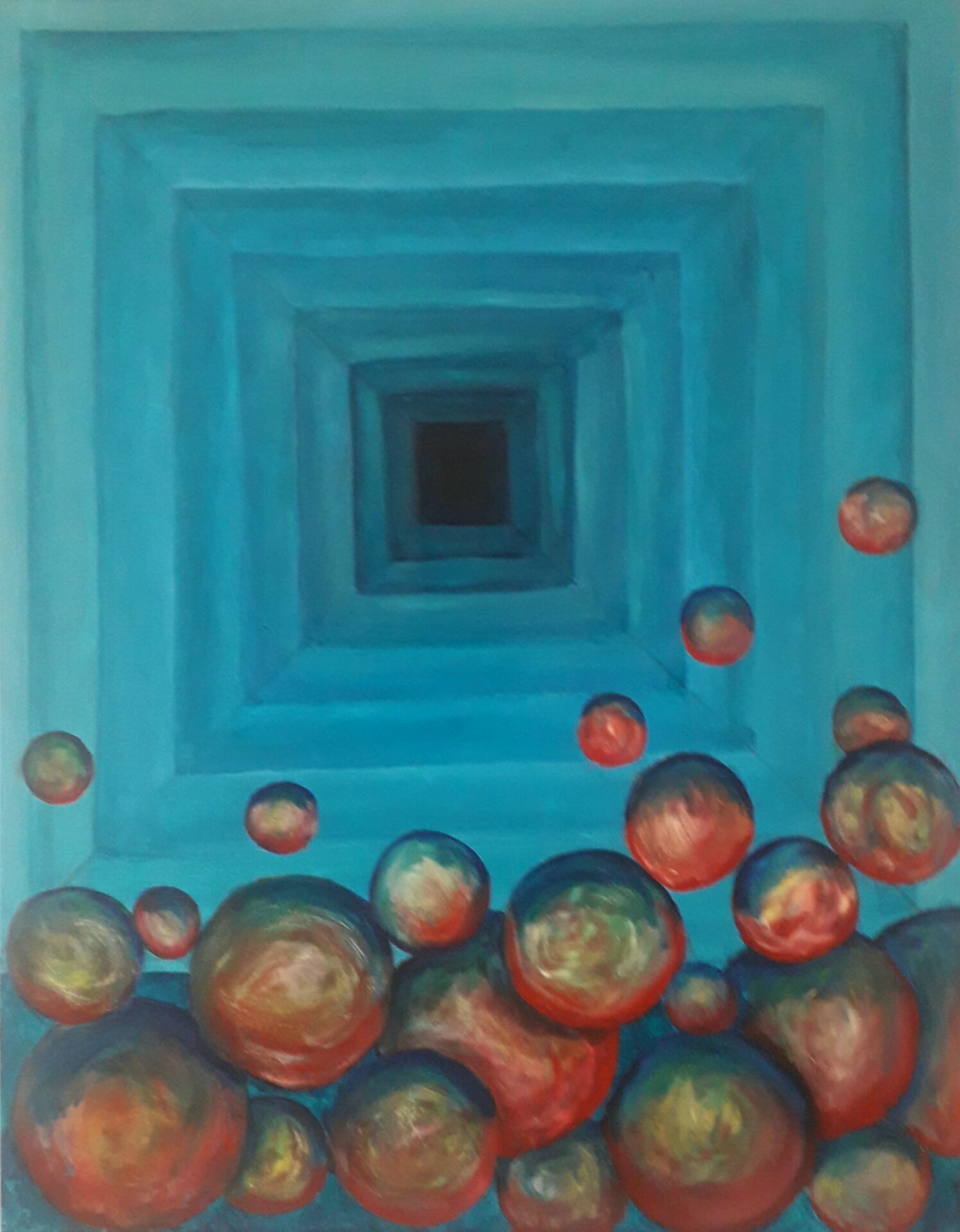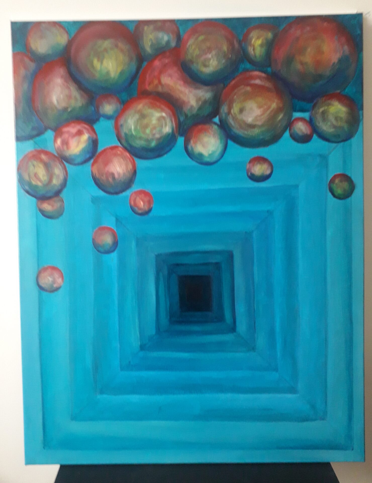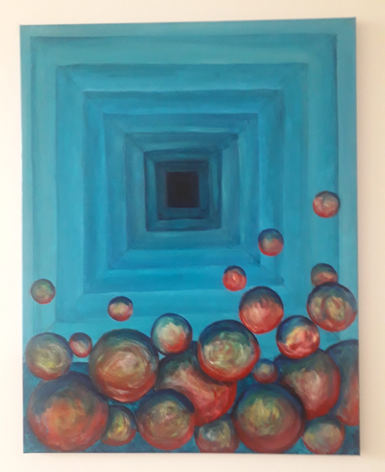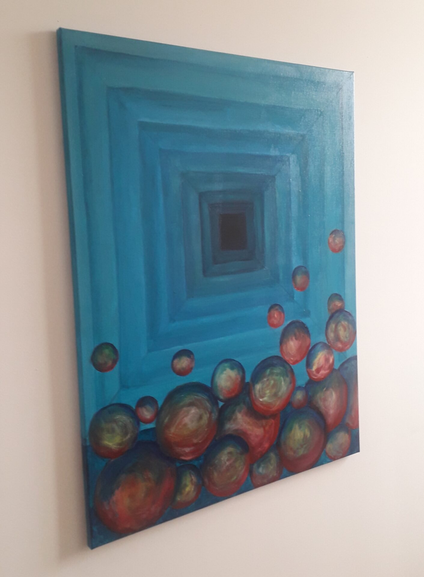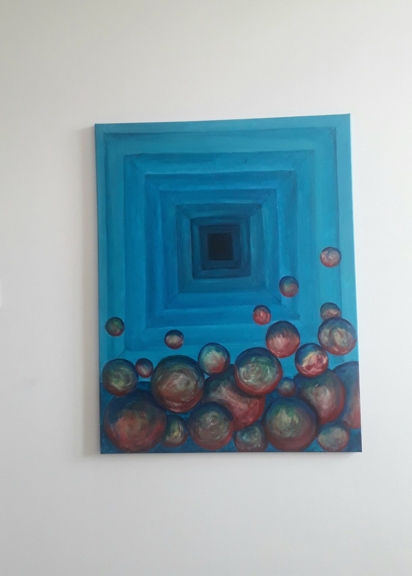 Obraz namalowany farbą akrylową na płótnie o wymiarach 70 x 90 cm. Boki obrazu są zamalowane więc obraz nie wymaga oprawy. Sygnowany na rewersie i zabezpieczony werniksem.
