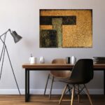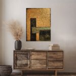 Abstrakcja geometryczna, akryl na płótnie o wymiarach 60x80. Obraz strukturalny. Może być nieodłącznym elementem aranżacji wnętrz, a nowoczesny klimat tej abstrakcyjnej kompozycji pasuje do sypialni, salonu, czy też biura. Obraz można powiesić w dowolnym kierunku, zarówno w pionie, jak i w poziomie.