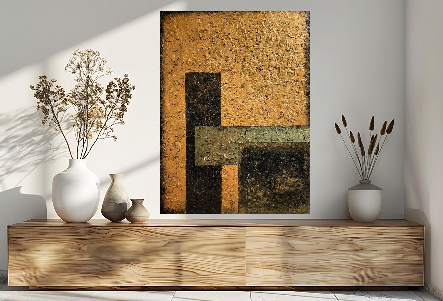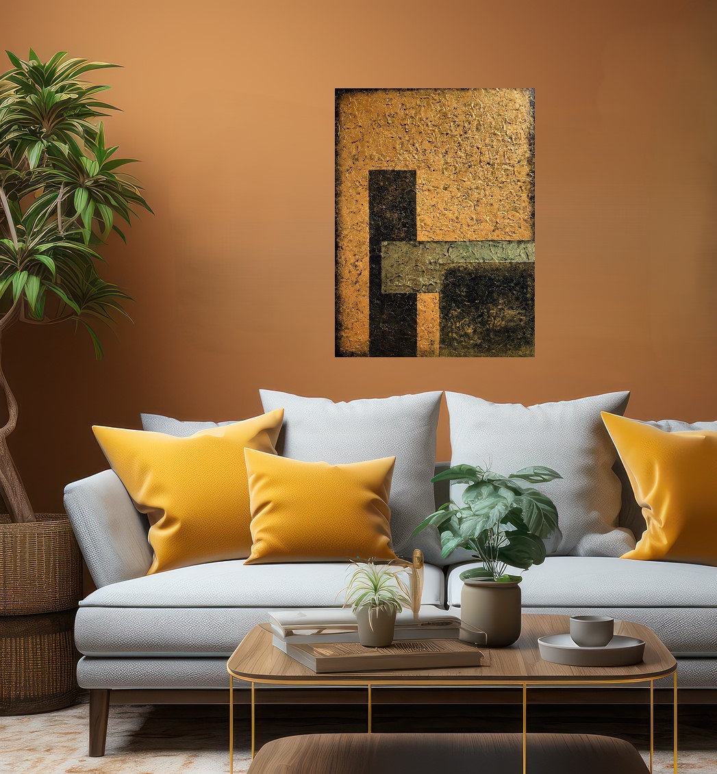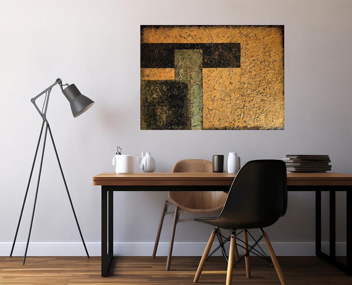 Abstrakcja geometryczna, akryl na płótnie o wymiarach 60x80. Obraz strukturalny. Może być nieodłącznym elementem aranżacji wnętrz, a nowoczesny klimat tej abstrakcyjnej kompozycji pasuje do sypialni, salonu, czy też biura. Obraz można powiesić w dowolnym kierunku, zarówno w pionie, jak i w poziomie.
