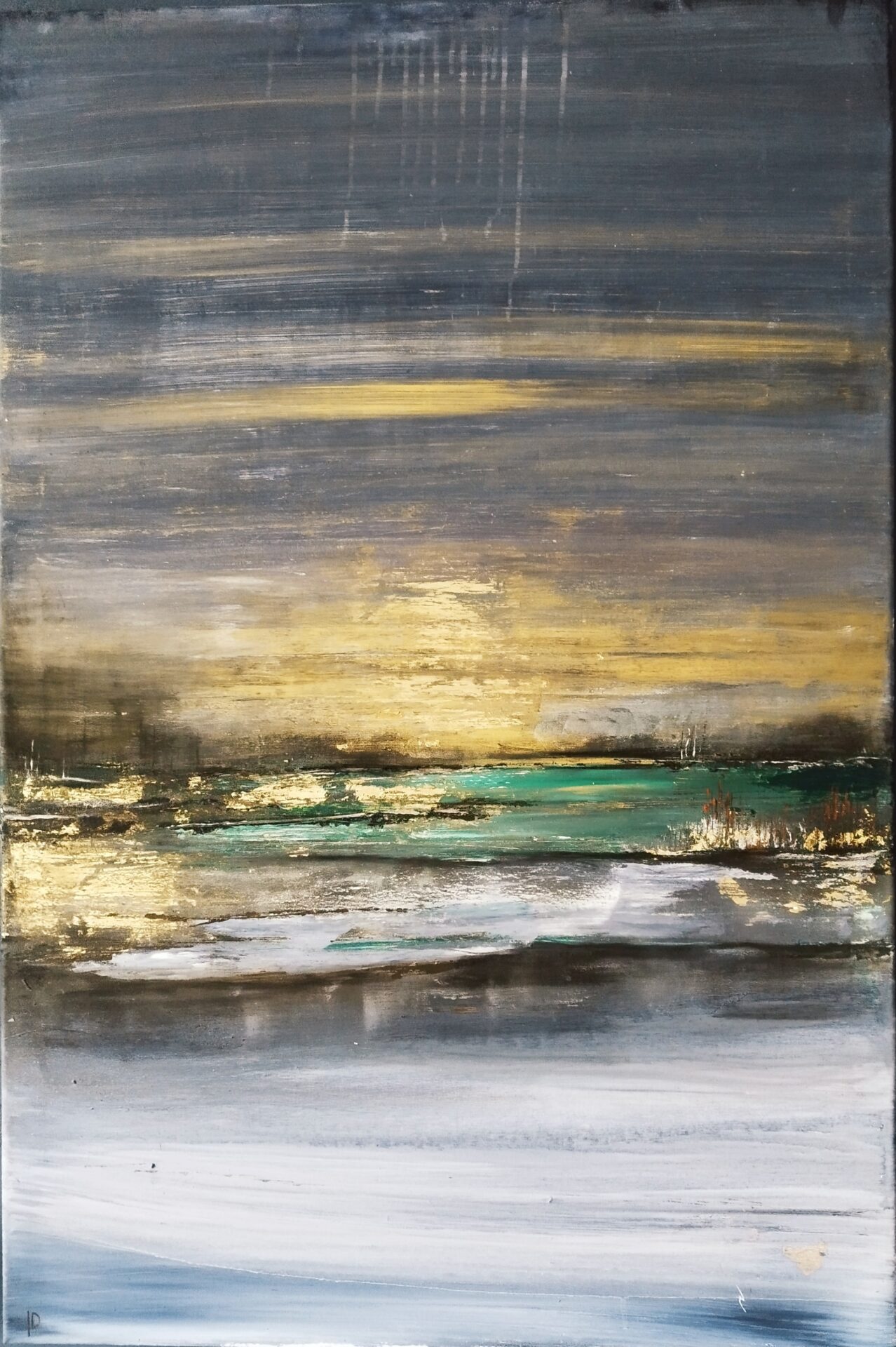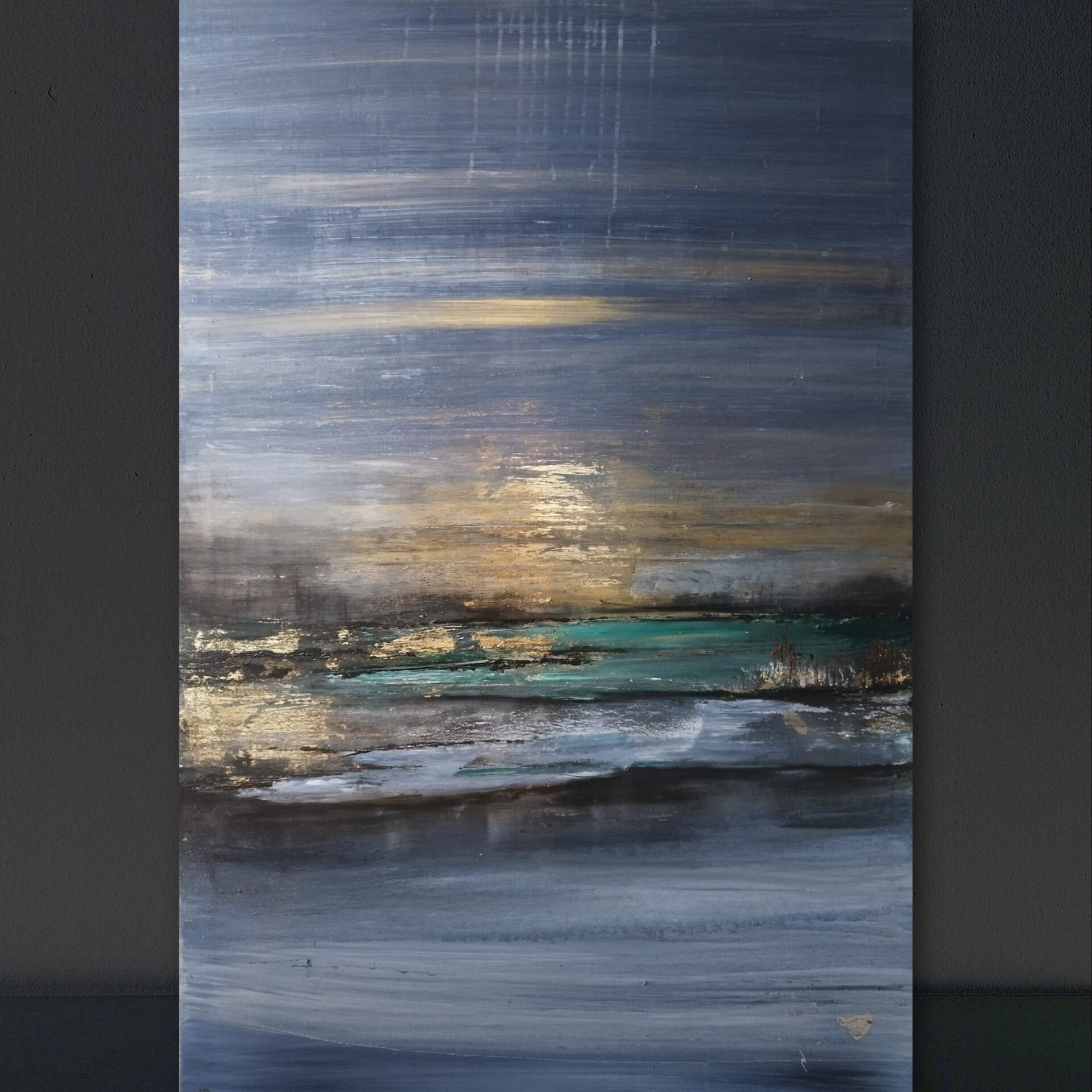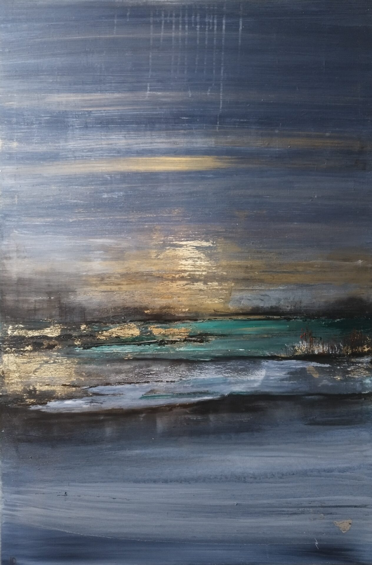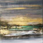 Abstrakcyjny obraz akrylowy na płótnie bawełnianym 100/70, grube krosna. Werniksowany, sygnowany, certyfikat, faktura. Odbiór osobisty w Sosnowcu lub wysyłka kurierem (+100zl)