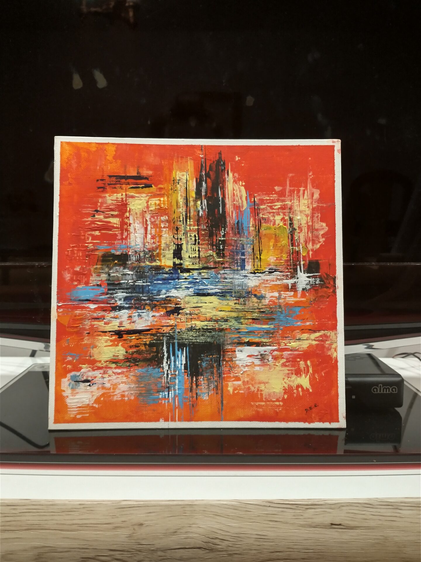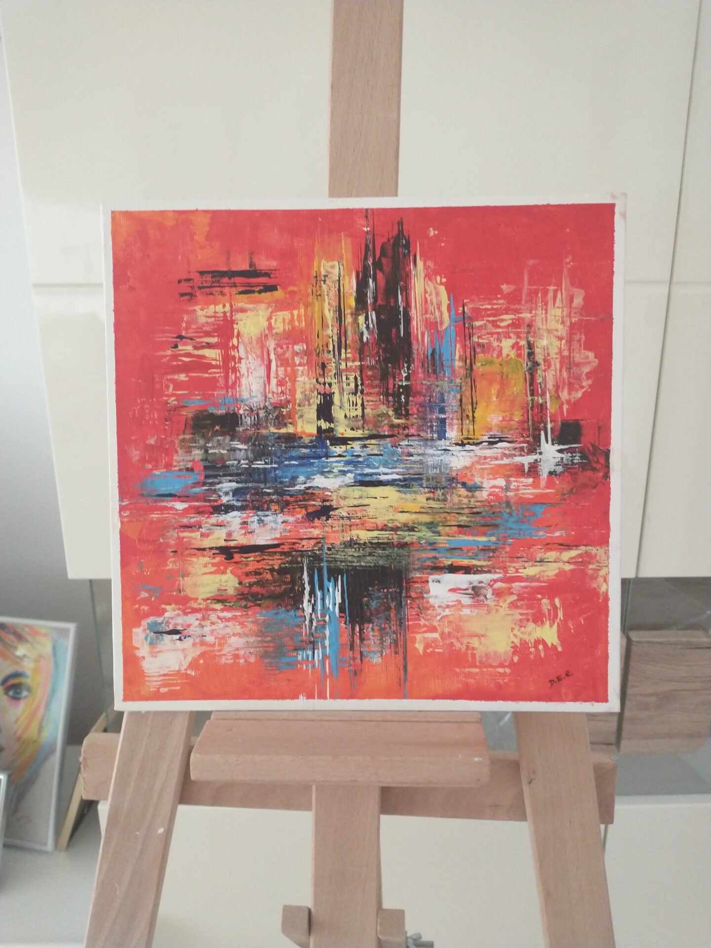 Obraz na panelu obciągniętym płótnem, akryl, wymiary 25×25, zabezpieczony werniksem