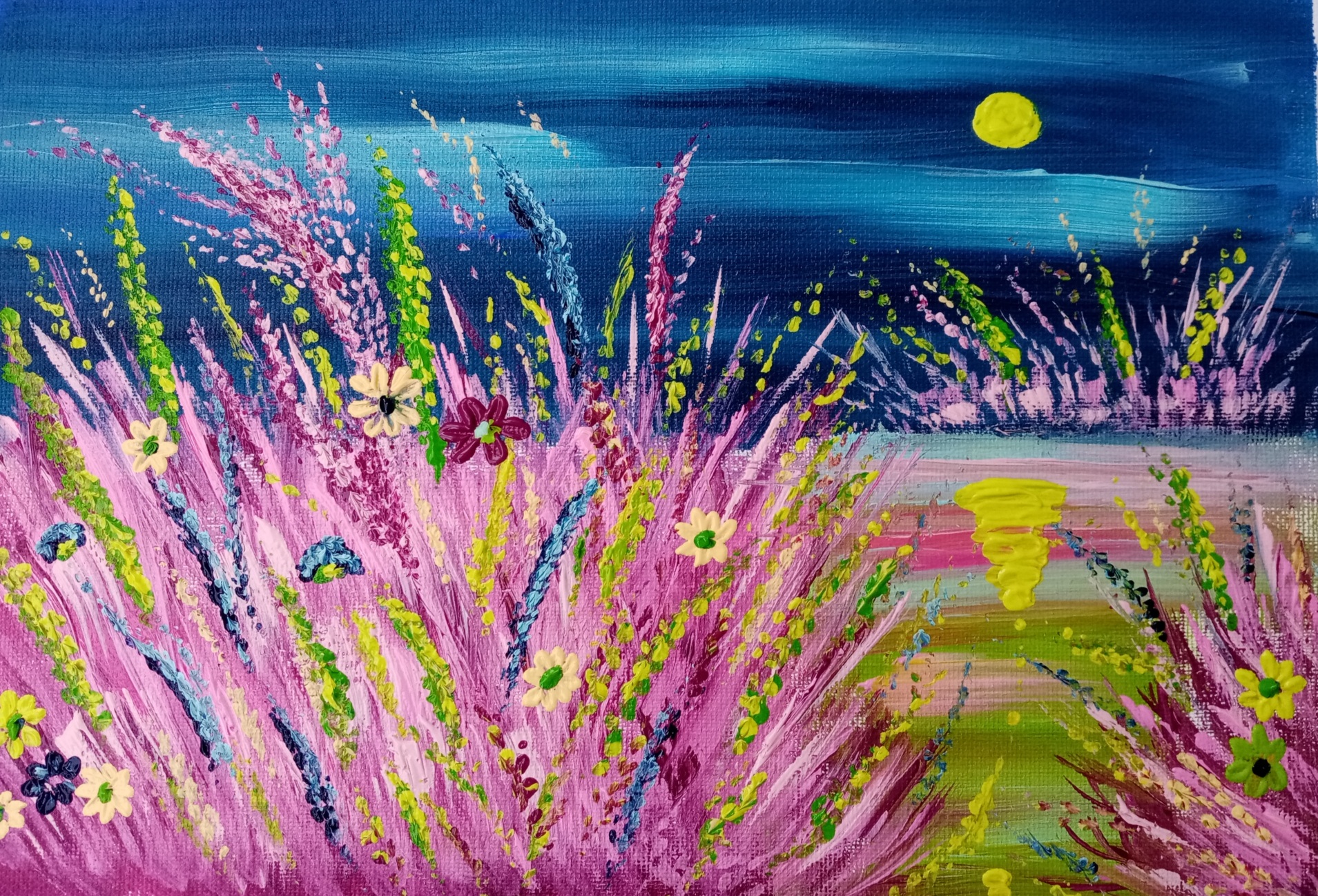 Pejzaż o wymiarach 21 x 29.Kupują państwo oryginał, potwierdzony certyfikatem autentyczności.Praca jest sygnowana i zabezpieczona werniksem. Jedyny, unikalny egzemplarz. Namalowany ręcznie na płótnie malarskim artystycznymi farbami akrylowymi. W rzeczywistości praca prezentuje się zdecydowanie lepiej niż na zdjęciach.