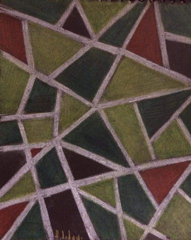 Seria z dwóch obrazów na papierze. Pastel. Abstrakcja w stylu kubizm.