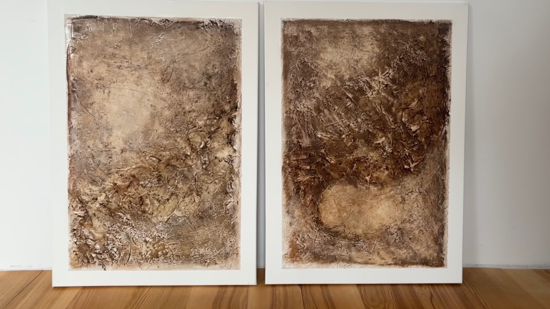 Możliwość zakupu jednego z pary. Obrazy zabezpieczone werniksem. Każdy o wymiarze 50×70