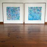Obrazy abstrakcyjne o strukturalnej formie każdy o wymiarach 60×60. Akryl i struktura na płótnie , zabezpieczone werniksem, oprawione w ramy. Niepowtarzalne, hipnotyzujące swą kolorystyką i strukturą.