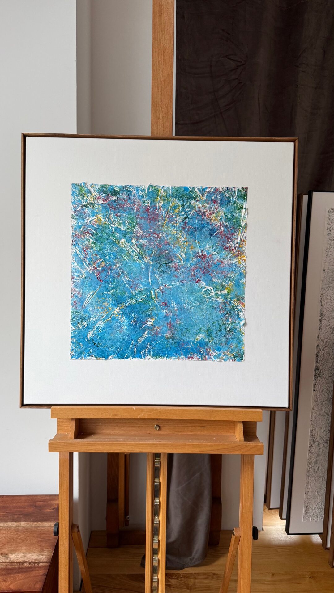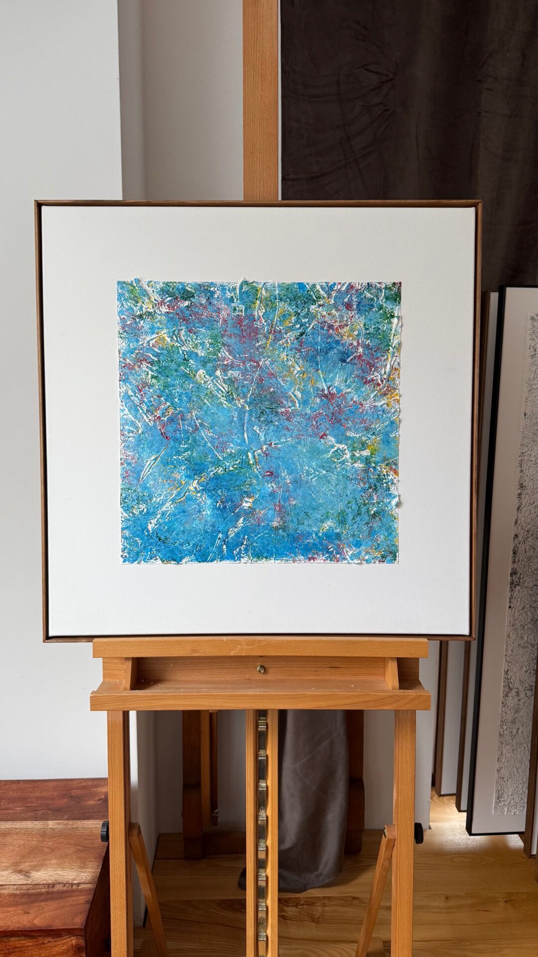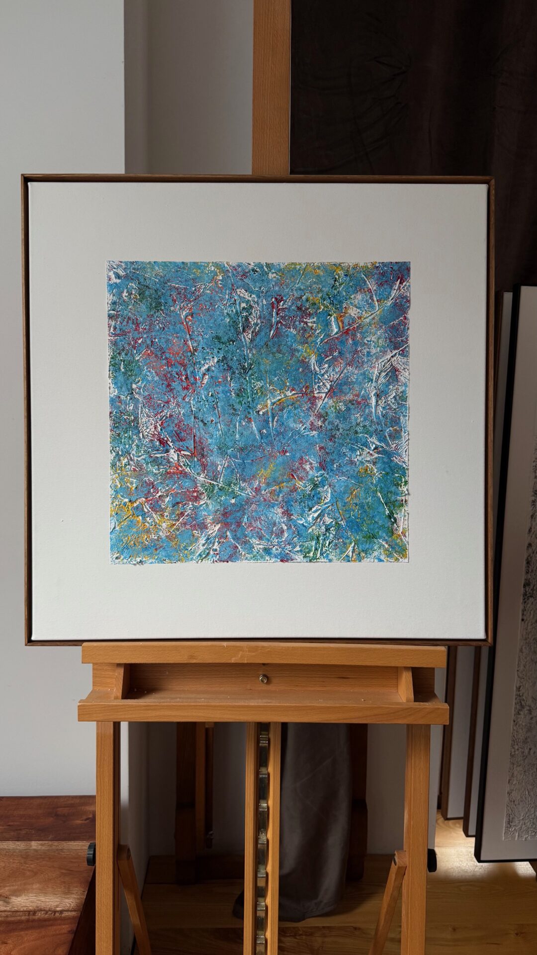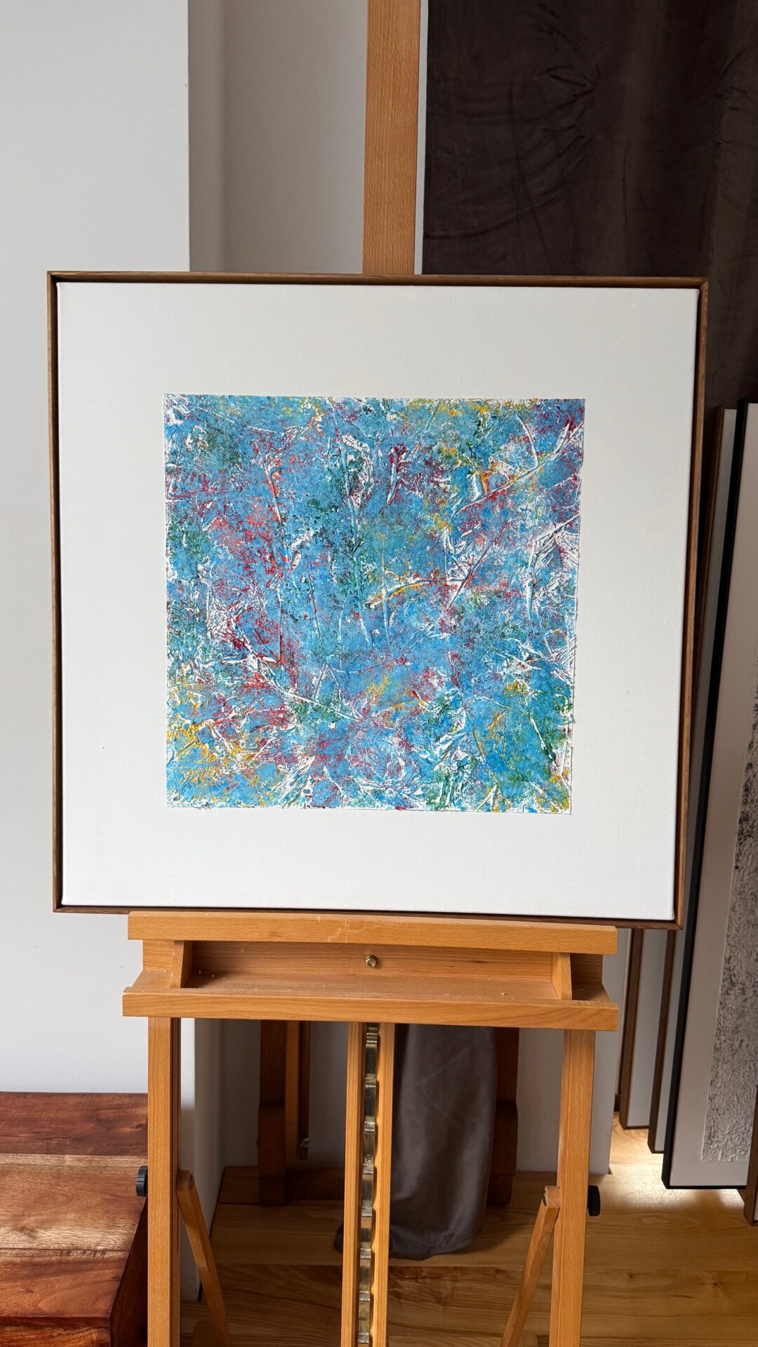 Obrazy abstrakcyjne o strukturalnej formie każdy o wymiarach 60×60. Akryl i struktura na płótnie , zabezpieczone werniksem, oprawione w ramy. Niepowtarzalne, hipnotyzujące swą kolorystyką i strukturą.
