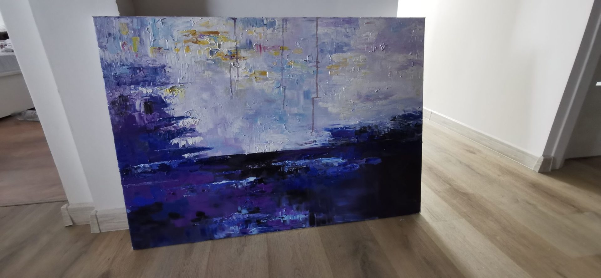 Obraz abstrakcyjny o wyraźnych, kobaltowych barwach. Doskonały akcent do każdego mieszkania. Malowany farbami renomowanymi farbami olejnymi na płótnie bawełnianym o wysokiej gramaturze. Każdy z moich obrazów jest sygnowany i utrwalony warstwą werniksu. Wymiary 100×70.