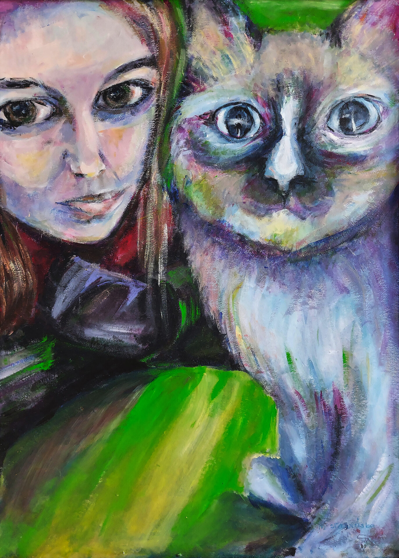 Moja córka uwielbia koty. Chciałam uwiecznić jej pasję, ale w sposób niebanalny, niedodzienny.