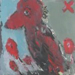 Obraz na płótnie. AKM – ptak, który jak opisuje artysta, jest krzyżówką w 25% pelikana, w 25% wróbla, w 25% kruka i 25% samego artysty. Więcej o artyście na stronie: https://akm-kreutzberg.eu/