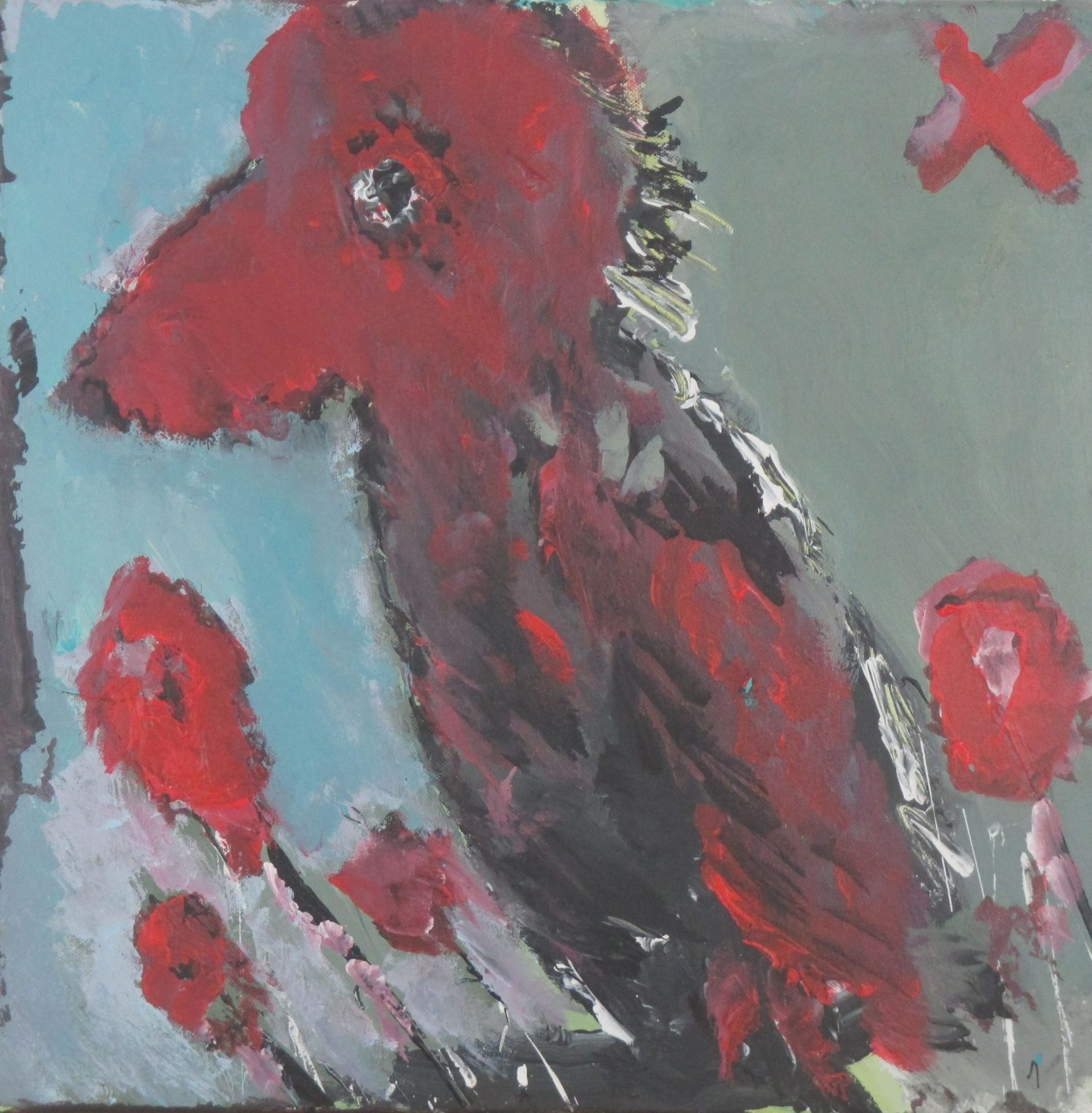 Obraz na płótnie. AKM – ptak, który jak opisuje artysta, jest krzyżówką w 25% pelikana, w 25% wróbla, w 25% kruka i 25% samego artysty. Więcej o artyście na stronie: https://akm-kreutzberg.eu/