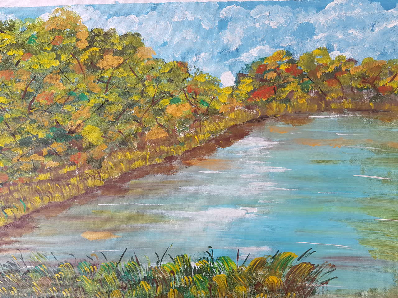 Ręczna praca wykonana farbami akrylowymi bardzo dobrej jakości na płótnie w formacie A 3.