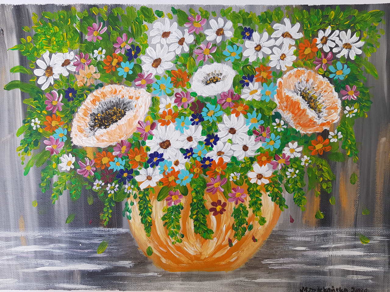 Ręczna praca wykonana farbami akrylowymi bardzo dobrej jakości na płótnie w formacie A 3.