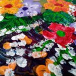 Zwykłe kwiaty , rozmiar 30 x 30, gruba warstwa farby widoczna na zdjęciach.