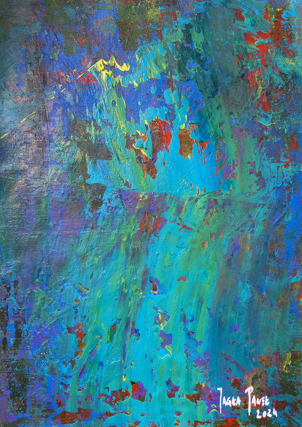 Praca wykonana na arkuszu płótna A4 gramatura 280gr. farbami akrylowymi „Renesans” ,” Amsterdam”Praca oprawiona autorska AFRP Paweł Jagła sygnowana z przodu i tyłu.Wymiar Ramki: 29,5 x 36,5 cm