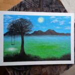 Witam. Jestem nastoletnią, dopiero rozpoczynająca przygodę ze sztuką dziewczyną. Mam na sprzedaż autorski obraz malowany farbami akrylowymi na desce o wymiarach 21×30 cm.