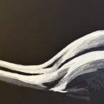 Niezwykłe unikalne abstrakcyjne dzieło – Akt kobiecy w świetle. Namalowane farbami akrylowymi profesjonalnymi na czarnym bawełnianym płótnie naciągniętym na blejtramie o rozmiarach 70×50 cm.