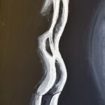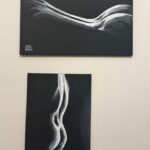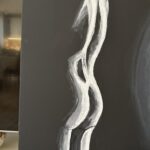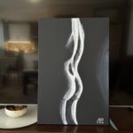 Niezwykłe unikalne abstrakcyjne dzieło – Akt męski w świetle. Namalowane farbami akrylowymi profesjonalnymi na czarnym bawełnianym płótnie naciągniętym na blejtramie o rozmiarach 60×40 cm.