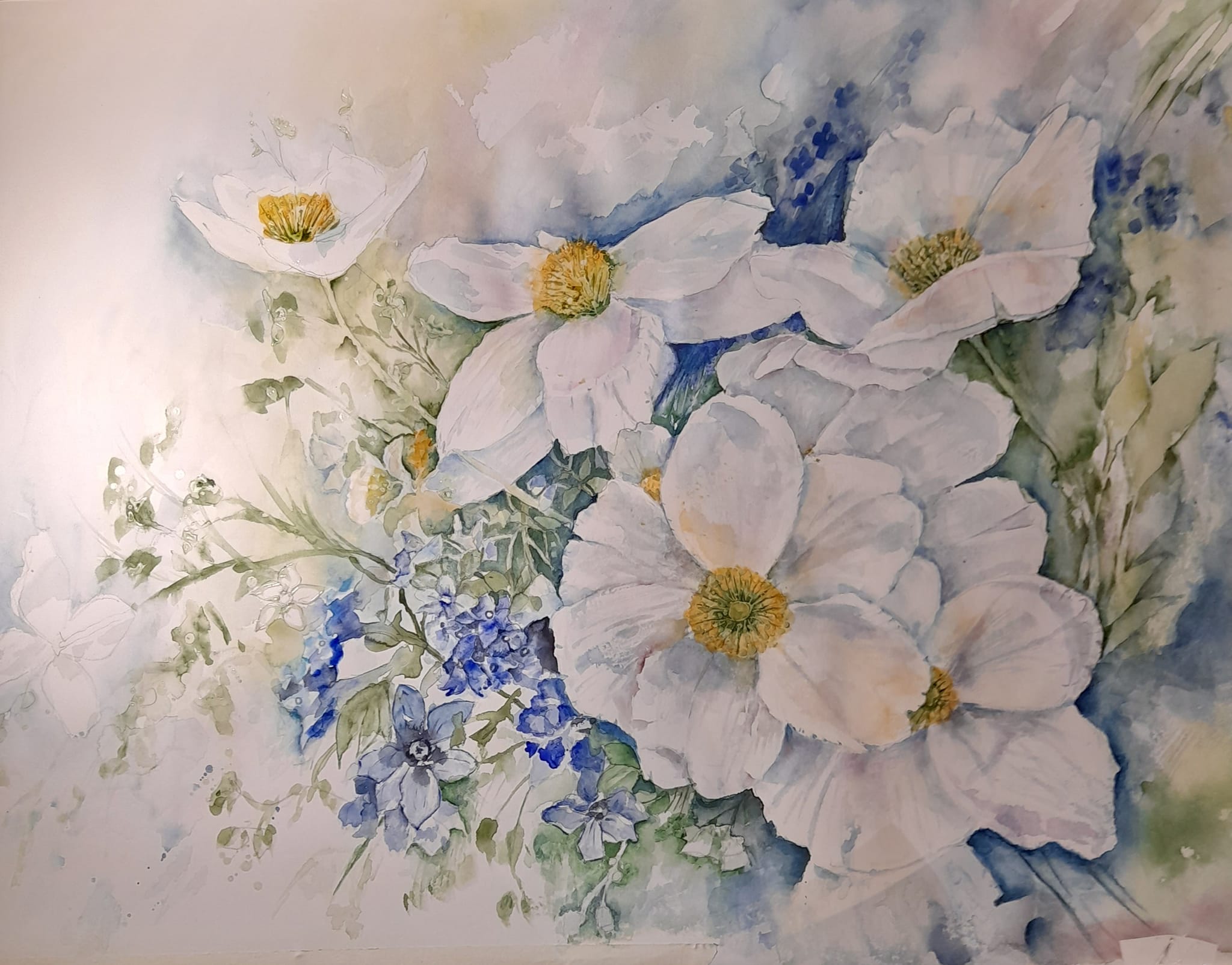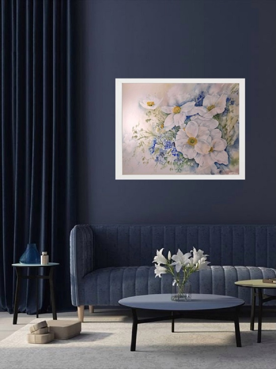 Motyw kwiatowy wykonany techniką akwarelową o rozmiarach 50 x 70 cm. W odpowiednio dobranej ramie będzie stanowić przyjemną dekorację ściany. Zapraszam.