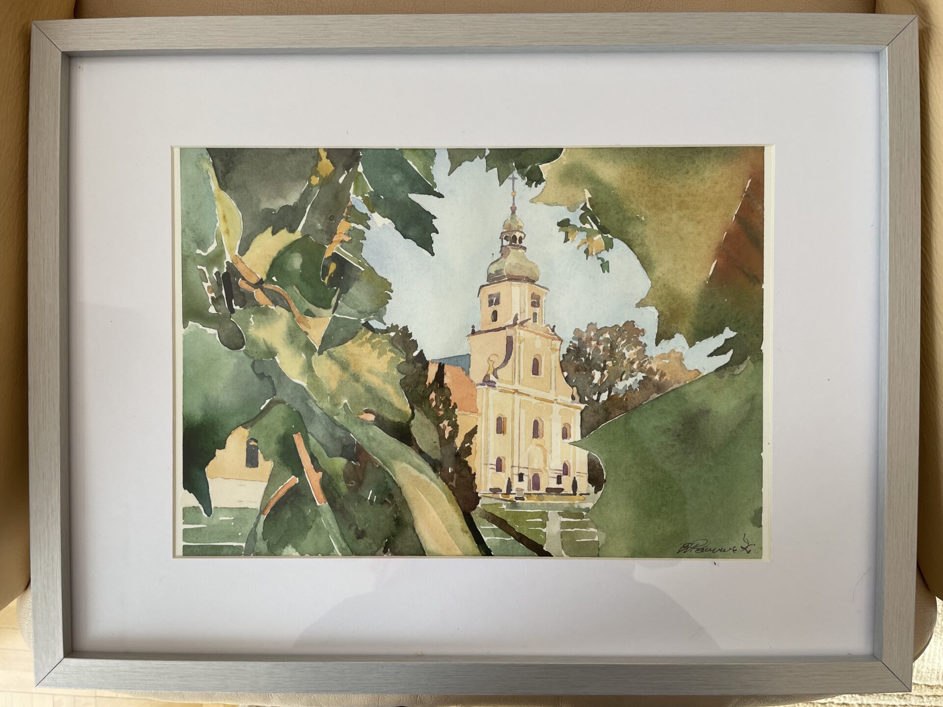 Akwarela „Klasztor Cysterski”. Obraz oprawiony. Wymiar obrazu: 20 x 30. Wymiar ramy: 32 x 42.
