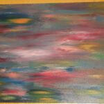 Akryl na płótnie, obraz przedstawia mgławice, kolory tęczy symbolizują nadzieję i piękno tego co nieznane.