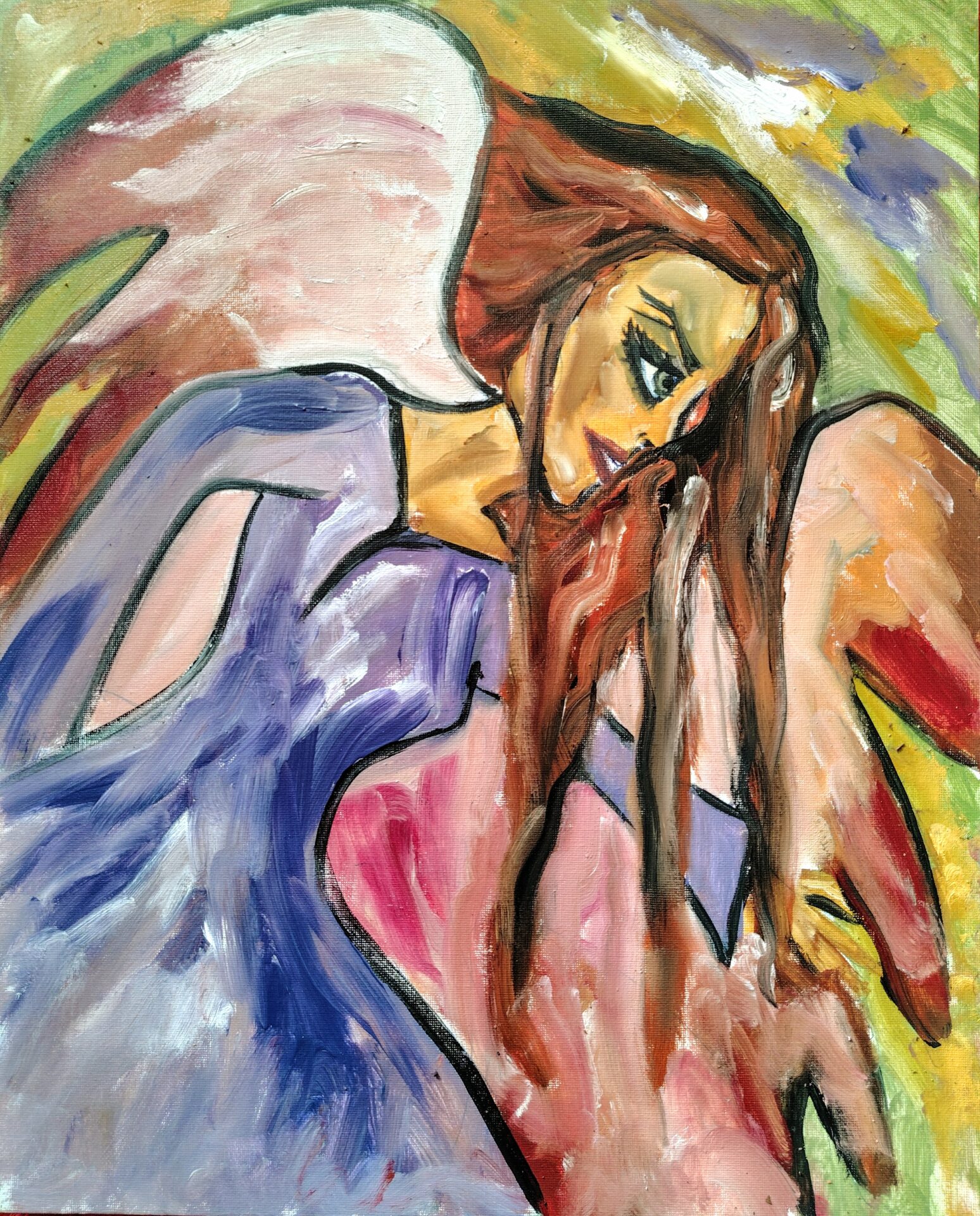 Obraz olejny na płótnie rudowłosy anioł kobieta. Obraz malowany z mojej wyobraźni