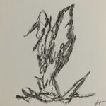Anioł- abstrakcja na papierze 20cm/20 cm wykonana piórem. Całość emanuje tajemniczością sugerując obecność anielskiej postaci bez dosłownego jej ukazania.
