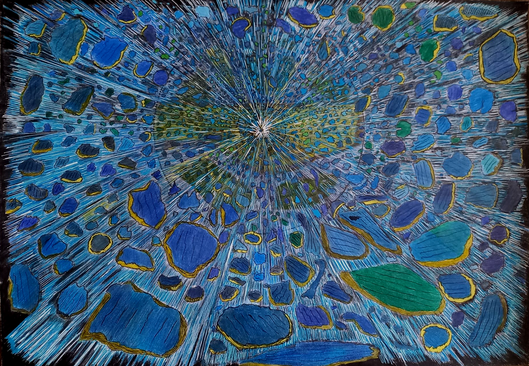 Technika: Kredki ołówkowe, flamastry akrylowe, cienkopis.