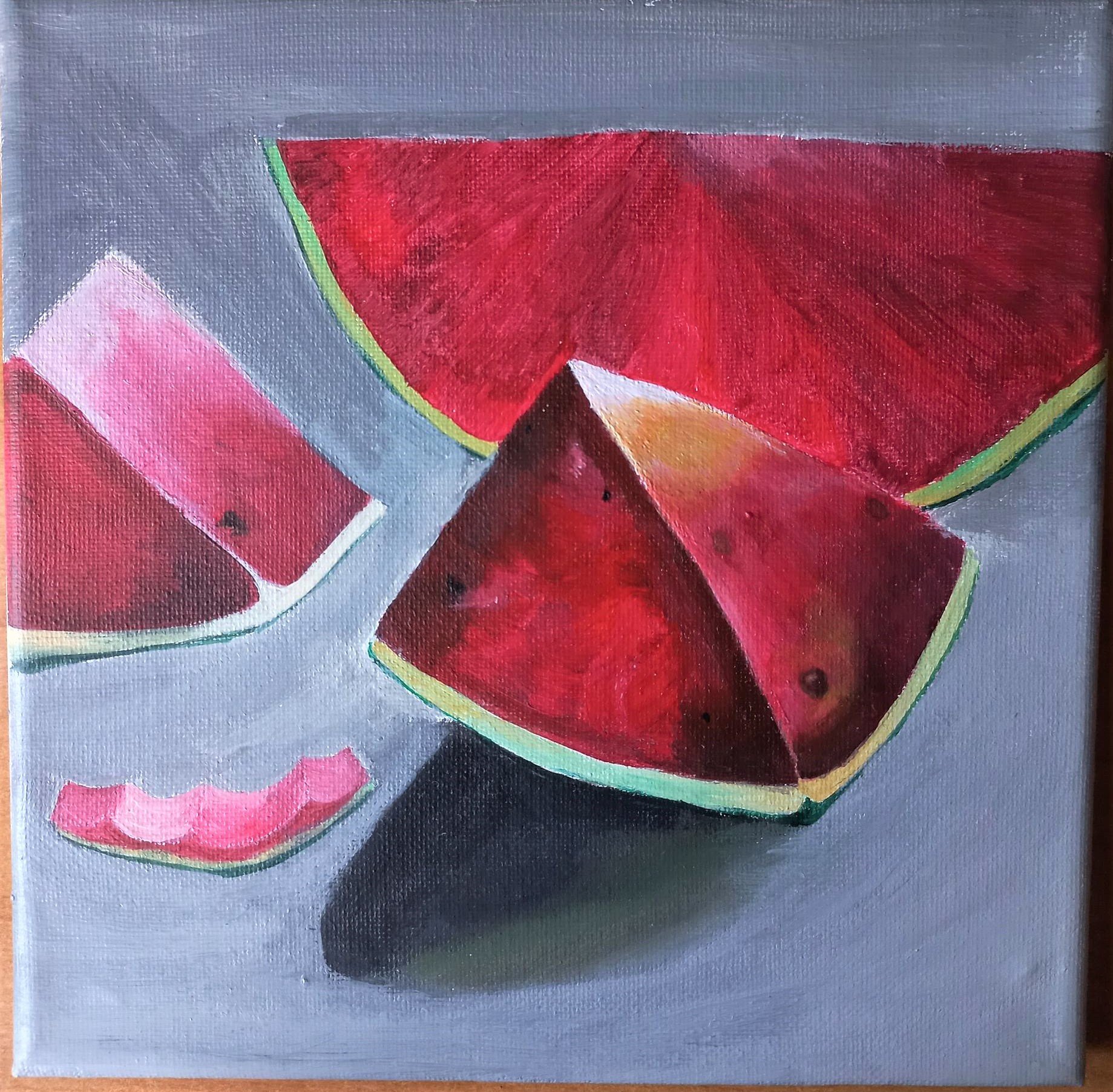 Letnie orzeźwienie wykonane farbami akrylowymi na podobraziu, obraz przyciąga prostotą zdobi zarówno ściany kuchenne, jak i pokoje dzienne.