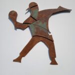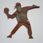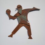 Rzeźba powstała w 2024 roku , podłożem pracy jest sklejka o grubości 12 mm . Całość wykonana jest z 3- ech warstw sklejki. Praca posiada cechy dla stylu futuryzm , fantastyka .Wśród barw dominuje kolor realistycznie ukazujący efekt rdzy , metalu . Efektownie ukazana jest imitacja zacieków , wżery . Kompozycja jest pełna ruchu i dynamiki .Praca powstawała około trzy tygodnie. Pasuje do kazdego typu przestrzeni : industrialnej , minimalistycznej czy kolonialnej .Wymiary rzeźby wys . 87 cm , szer . 87 cm .Praca inspirowana muralem autorstwa artysty graffiti Banksy^ego .