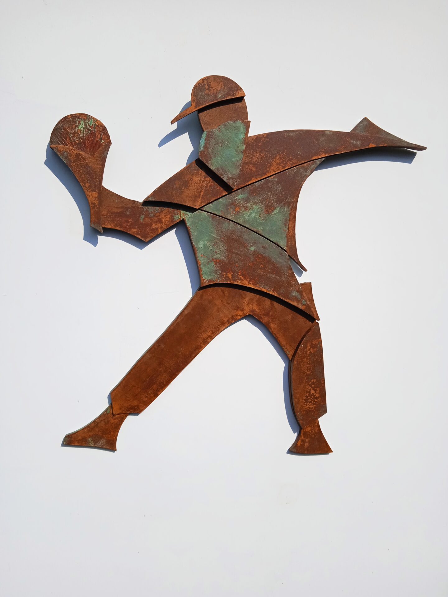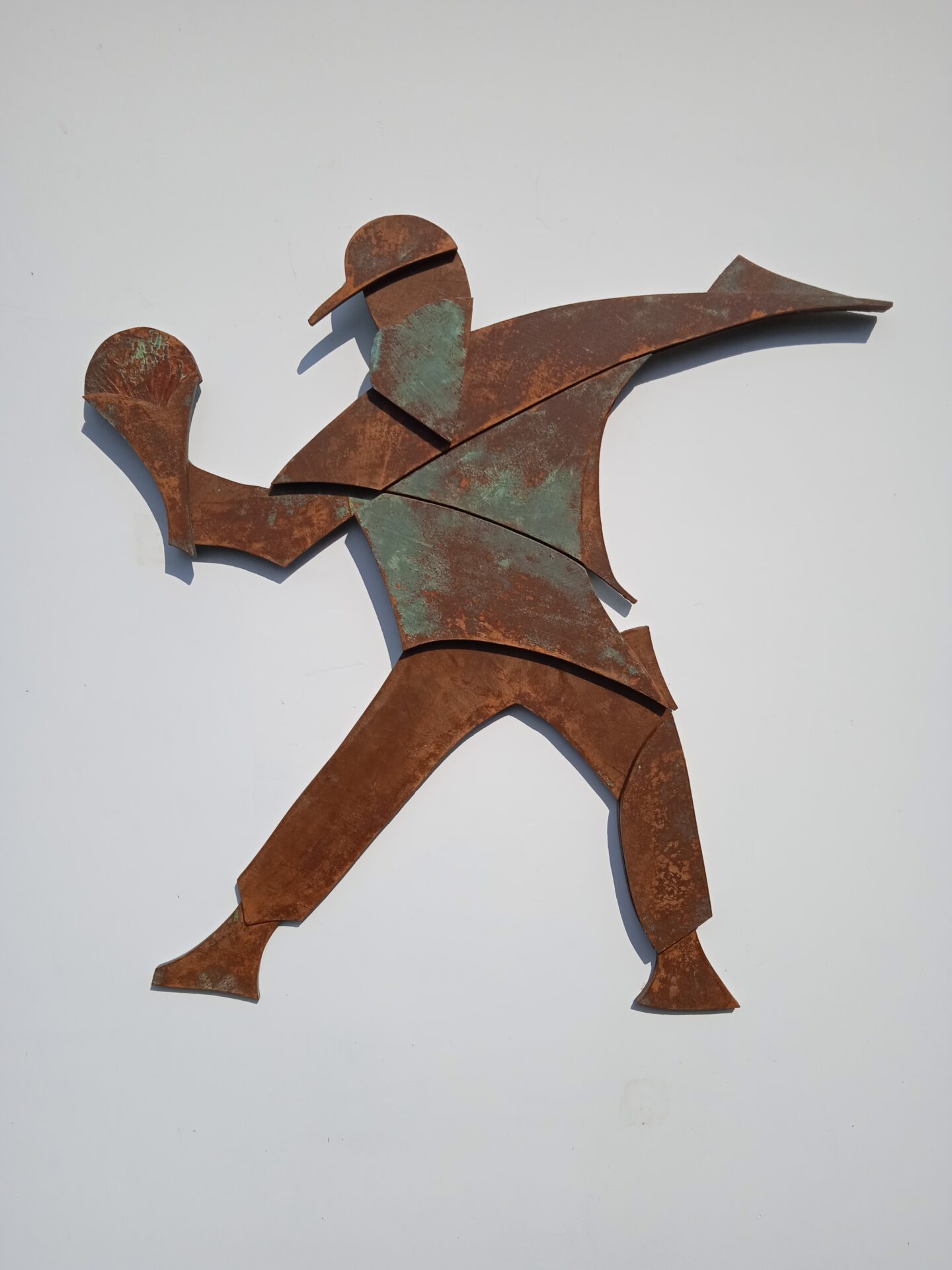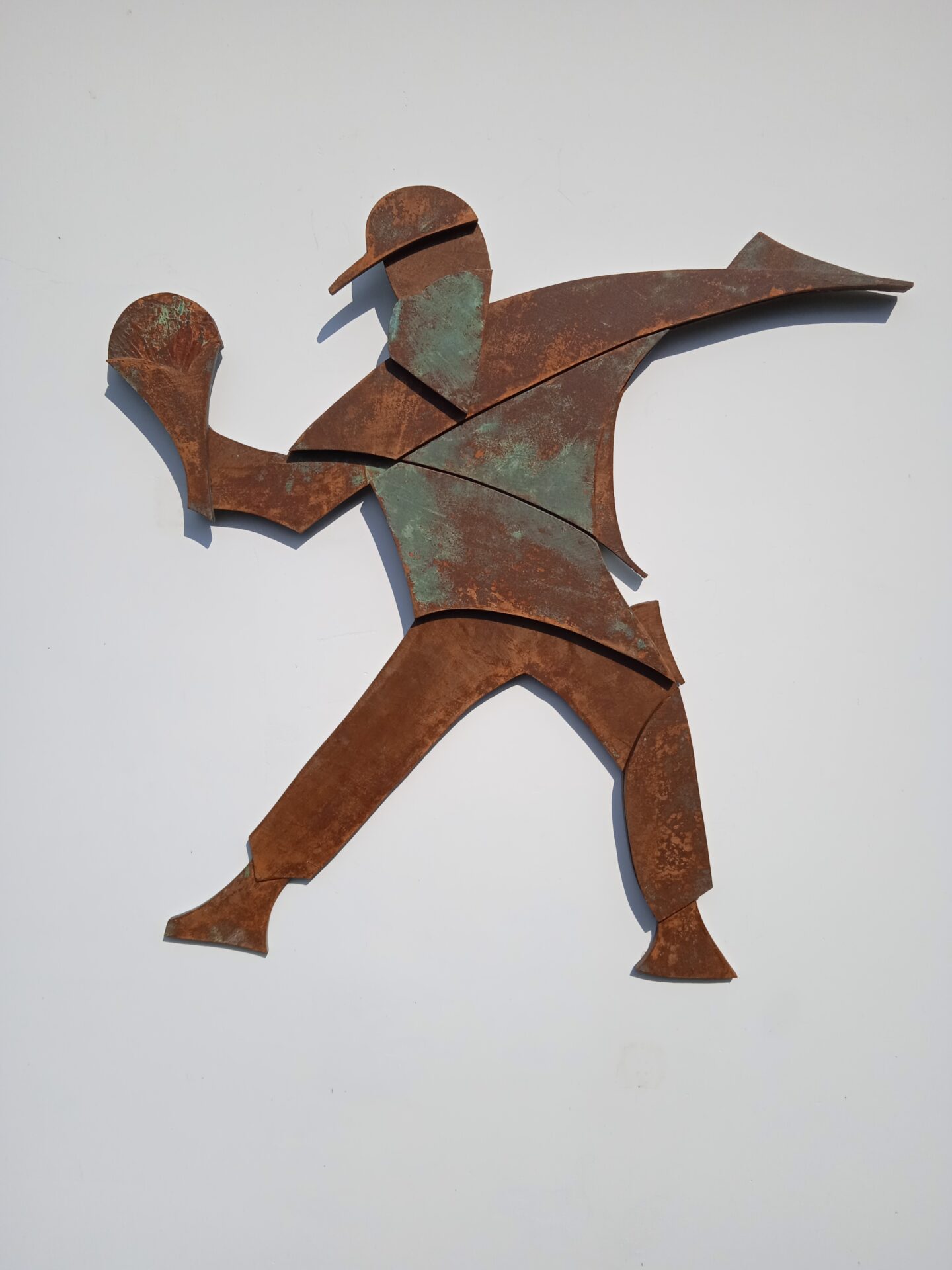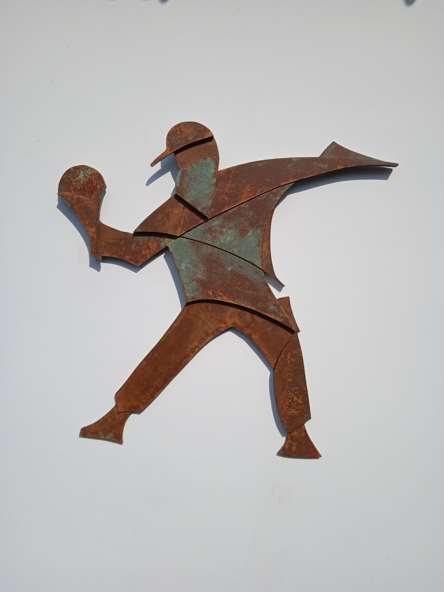 Rzeźba powstała w 2024 roku , podłożem pracy jest sklejka o grubości 12 mm . Całość wykonana jest z 3- ech warstw sklejki. Praca posiada cechy dla stylu futuryzm , fantastyka .Wśród barw dominuje kolor realistycznie ukazujący efekt rdzy , metalu . Efektownie ukazana jest imitacja zacieków , wżery . Kompozycja jest pełna ruchu i dynamiki .Praca powstawała około trzy tygodnie. Pasuje do kazdego typu przestrzeni : industrialnej , minimalistycznej czy kolonialnej .Wymiary rzeźby wys . 87 cm , szer . 87 cm .Praca inspirowana muralem autorstwa artysty graffiti Banksy^ego .