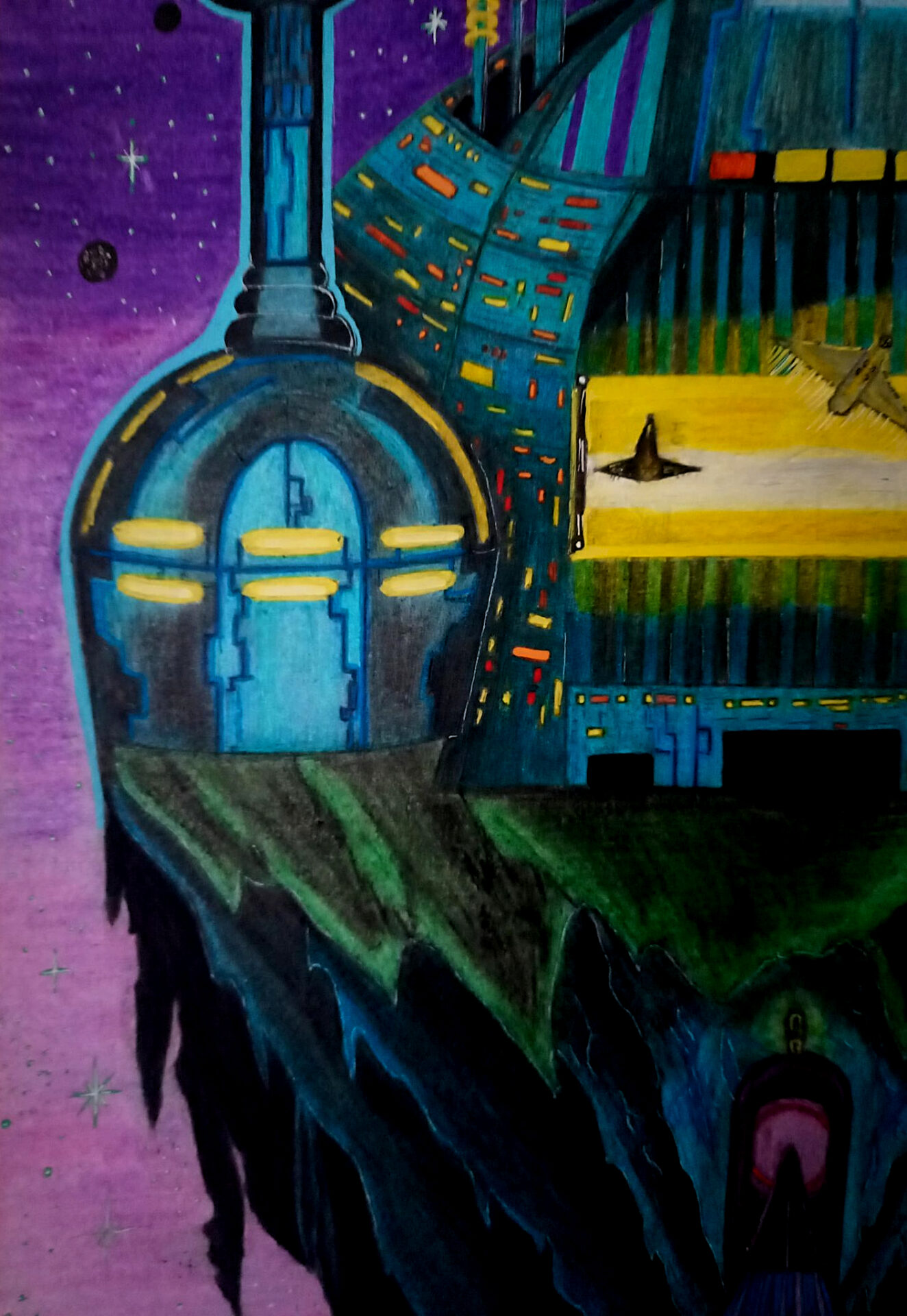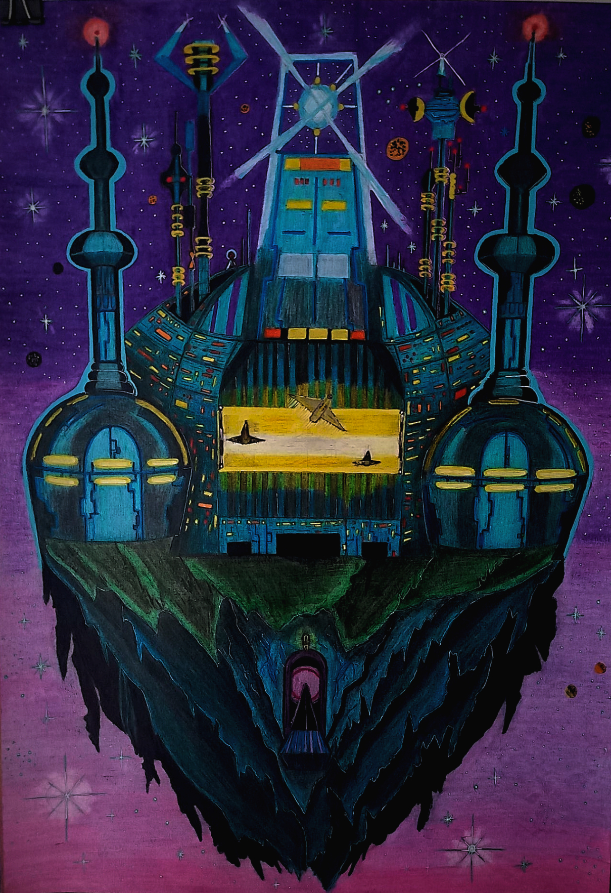 The Astral Castle” czyli pierwsza wizja w 2023r. Koncept narysowania zamku na unoszącej się wyspie narodził się podczas warsztatów graficznych początkiem grudnia 2022r. kiedy to przygotowałem prototyp tego co później stało się pierwszą wizją w nowym roku.