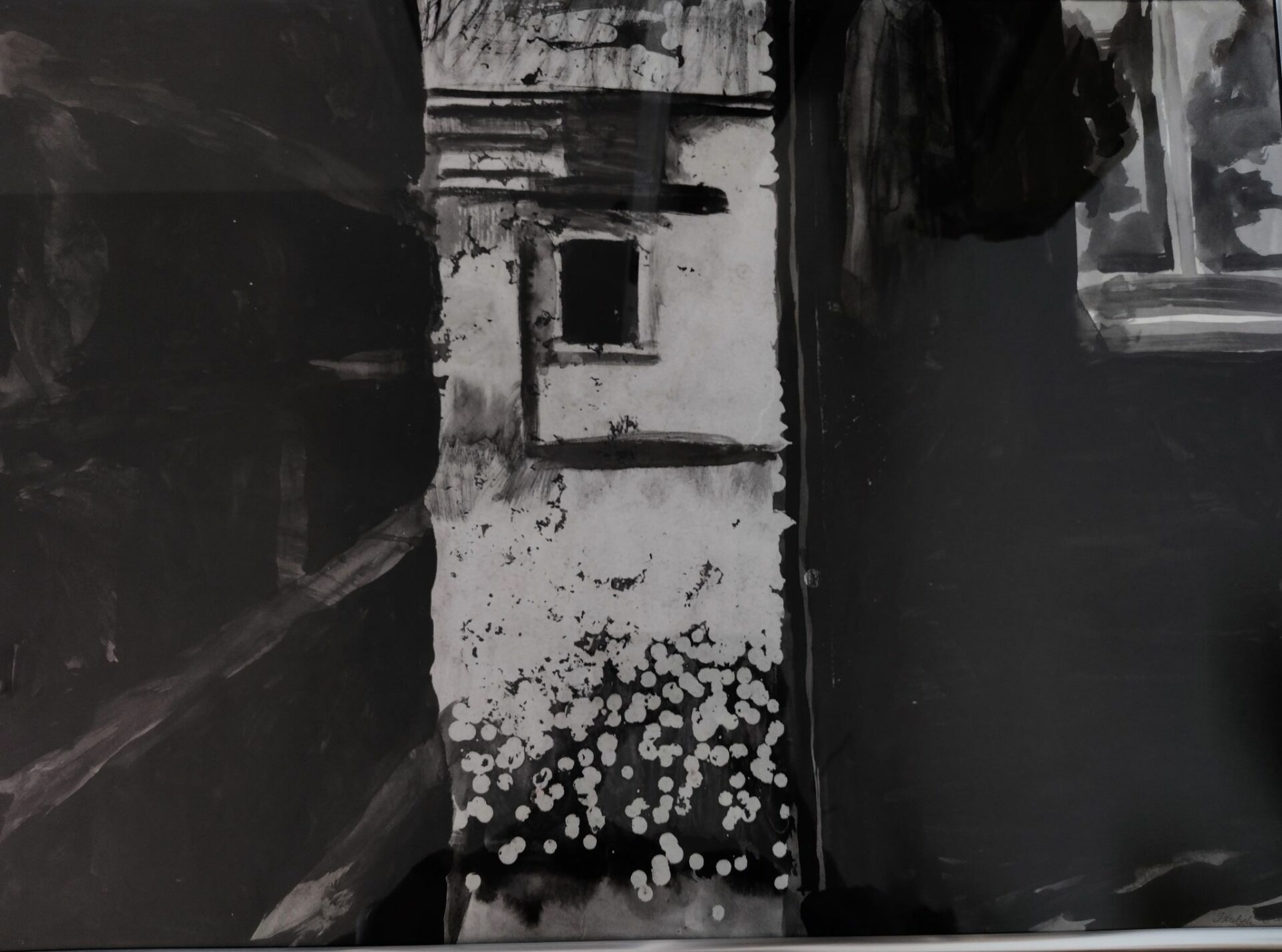 Wykonana w technice własnej praca malarska, na papierze. Szkło + antyrama srebrna aluminiowa. Wymiary 70/50cm, gotowa do zawieszenia