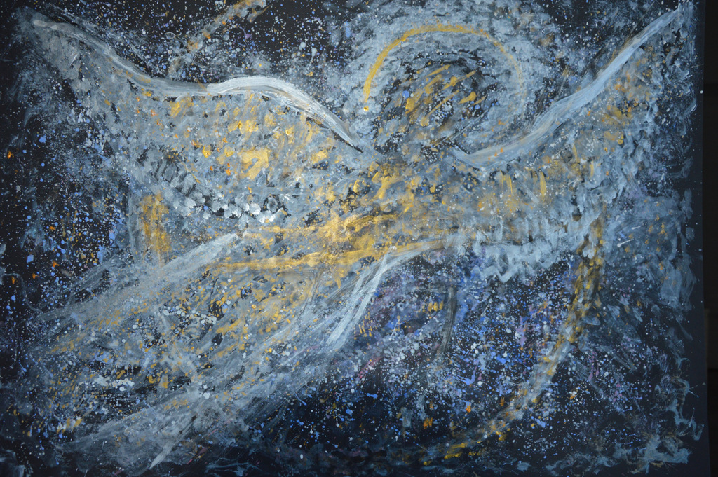 Azazel. . Obraz malowany akrylami na piance 5 mm i oprawiony w antyramę 100 x 70 cm