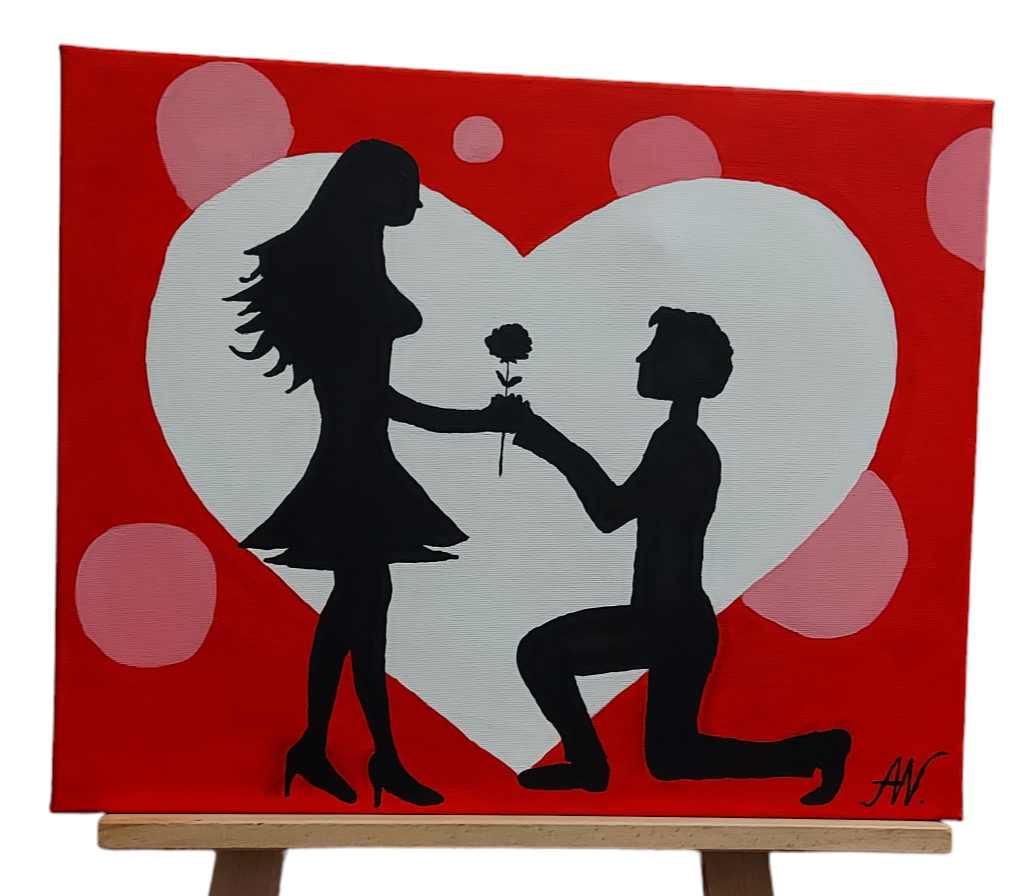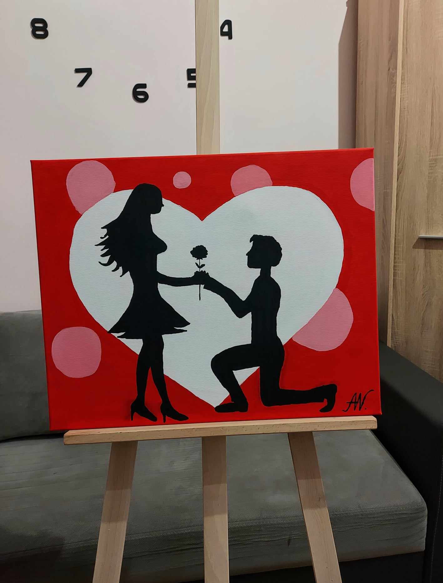 ”Bądź tylko Moja” malowany farbami akrylowymi na płótnie, blejtrama, zamalowane boki, gotowy do powieszenia, wymiary 40 cm x 50 cm