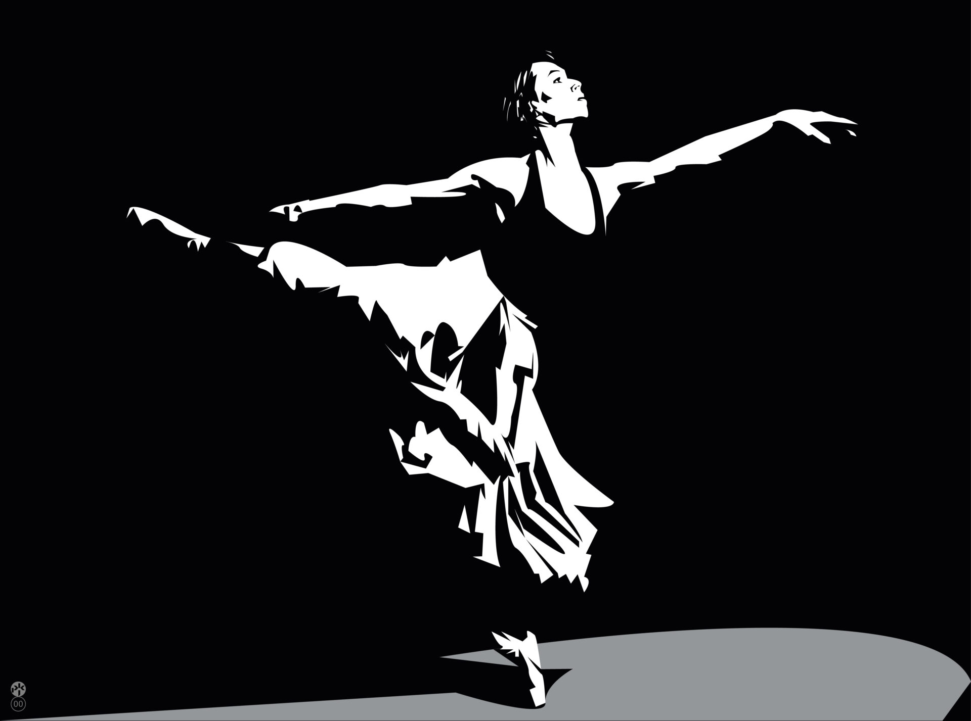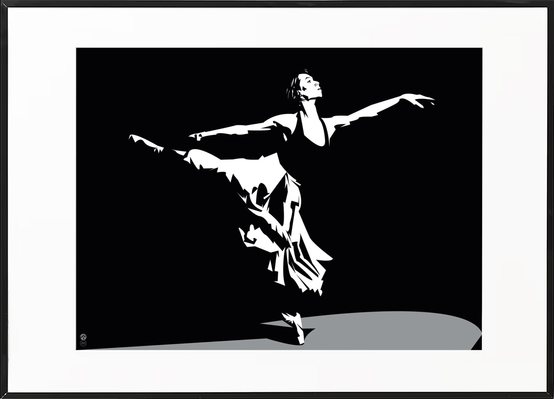 Minimalistyczna grafika sprowadzająca postaci tancerzy do zgeometryzowanej formy w silnym kontraście czerni i bieli. Wydruki Giclee są to najwyższej jakości reprodukcje dzieł sztuki, których wygląd, dzięki zastosowaniu najwyższej jakości materiałów (podłoża, atramenty) i urządzeń drukujących ( plamka jest praktycznie niezauważalna gołym okiem), jest prawie nieodróżnialny od oryginału. Dla grafiki cyfrowej są rzeczywistymi, nieekranowymi oryginałami. Profesjonalne wydruki typu Giclee mogą być nawet ponad 100 lat eksponowane wewnątrz pomieszczeń bez widocznej zmiany koloru. Są one wykonywane w limitowanym nakładzie 50 sztuk, numerowane a następnie własnoręcznie sygnowane przez artystę.