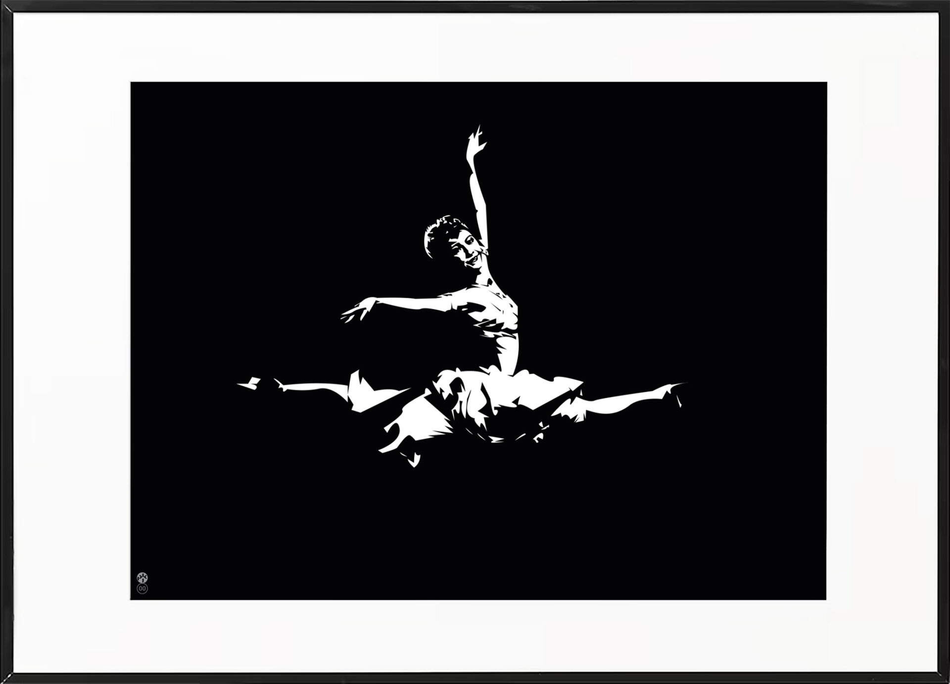 Minimalistyczna grafika sprowadzająca postaci tancerzy do zgeometryzowanej formy w silnym kontraście czerni i bieli. Wydruki Giclee są to najwyższej jakości reprodukcje dzieł sztuki, których wygląd, dzięki zastosowaniu najwyższej jakości materiałów (podłoża, atramenty) i urządzeń drukujących ( plamka jest praktycznie niezauważalna gołym okiem), jest prawie nieodróżnialny od oryginału. Dla grafiki cyfrowej są rzeczywistymi, nieekranowymi oryginałami. Profesjonalne wydruki typu Giclee mogą być nawet ponad 100 lat eksponowane wewnątrz pomieszczeń bez widocznej zmiany koloru. Są one wykonywane w limitowanym nakładzie 50 sztuk, numerowane a następnie własnoręcznie sygnowane przez artystę.