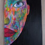 Obraz namalowany na podobraziu o rozmiarach 40×60, farbami akrylowymi. Boki niezamlowne, obraz nie jest zabezpieczony.