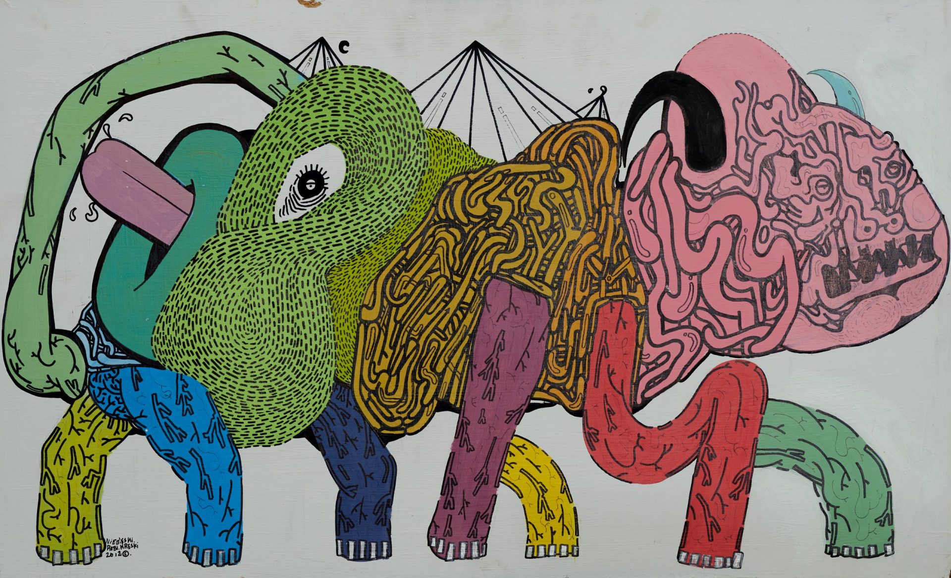 Sygnowany na dole: „NIEBIESKI. | ROBI. KRESKI |2012”