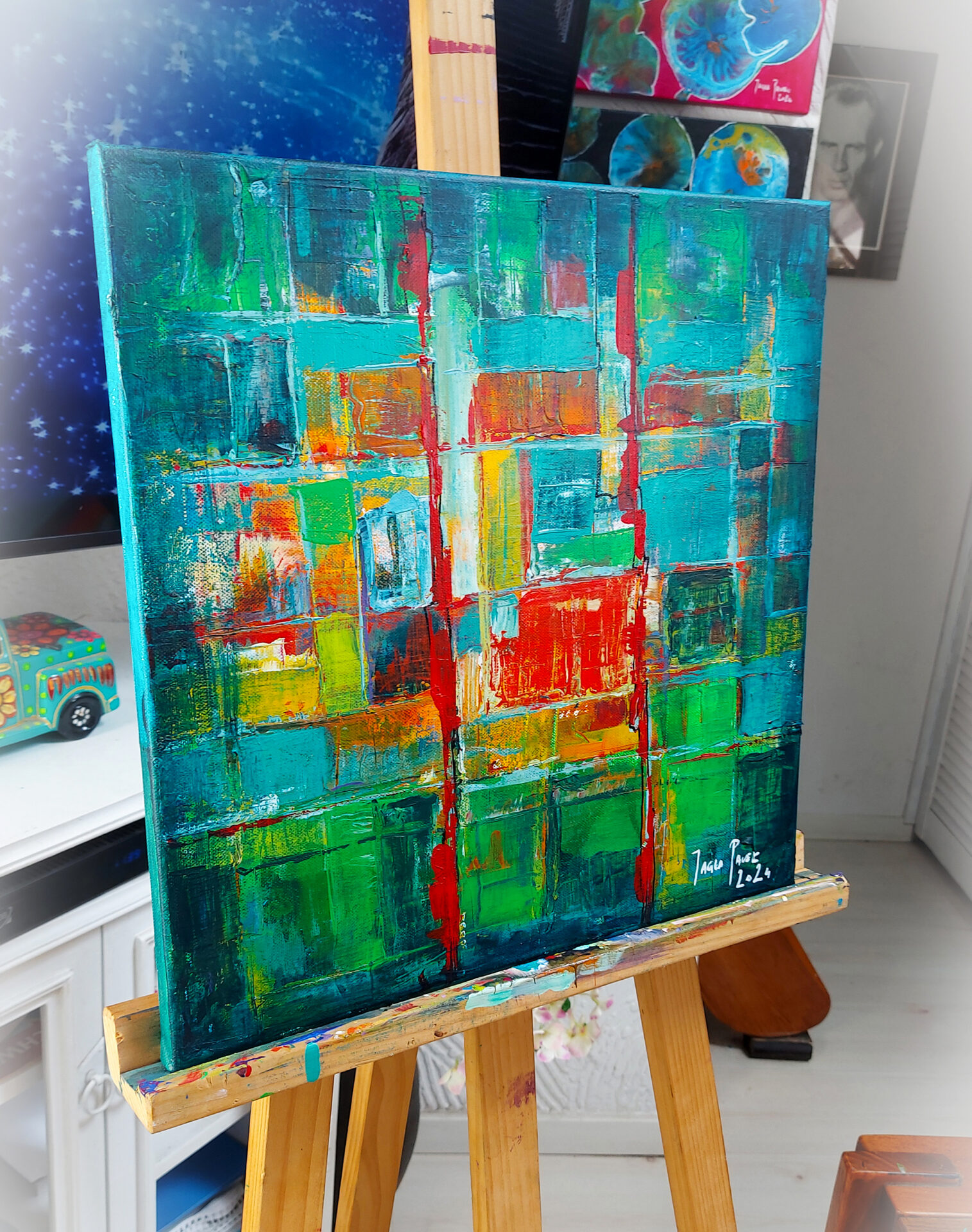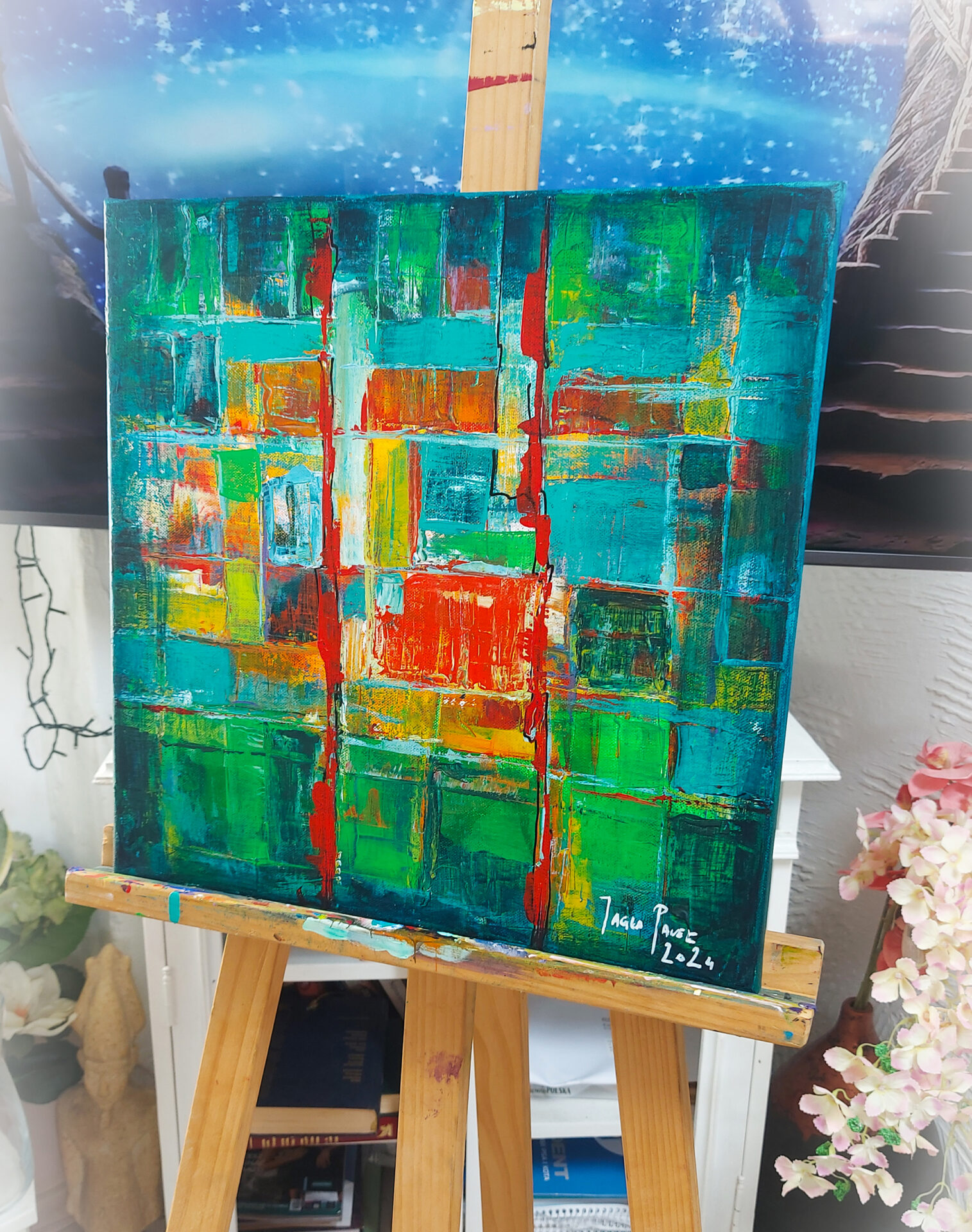 Obraz autorski Paweł Jagła akrylowe farby Maxi Acril „Renesans” praca werniksowana gotowa do zawieszenia z zamalowanymi bokami…Płótno bawełniane 380gr/m2Wymiar 40 x 40 cm