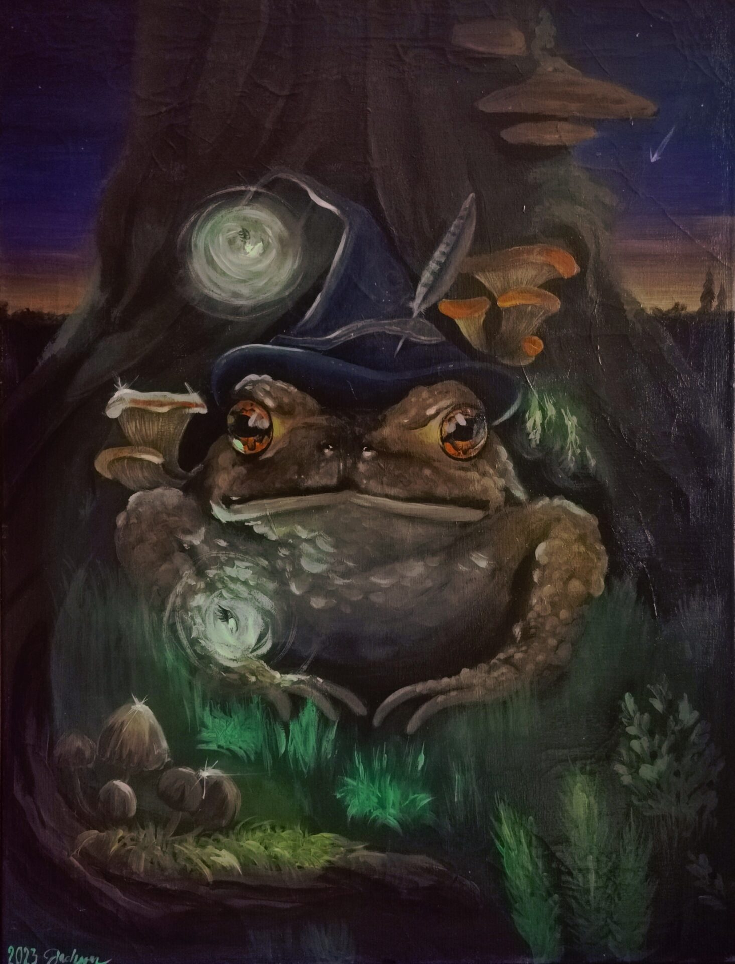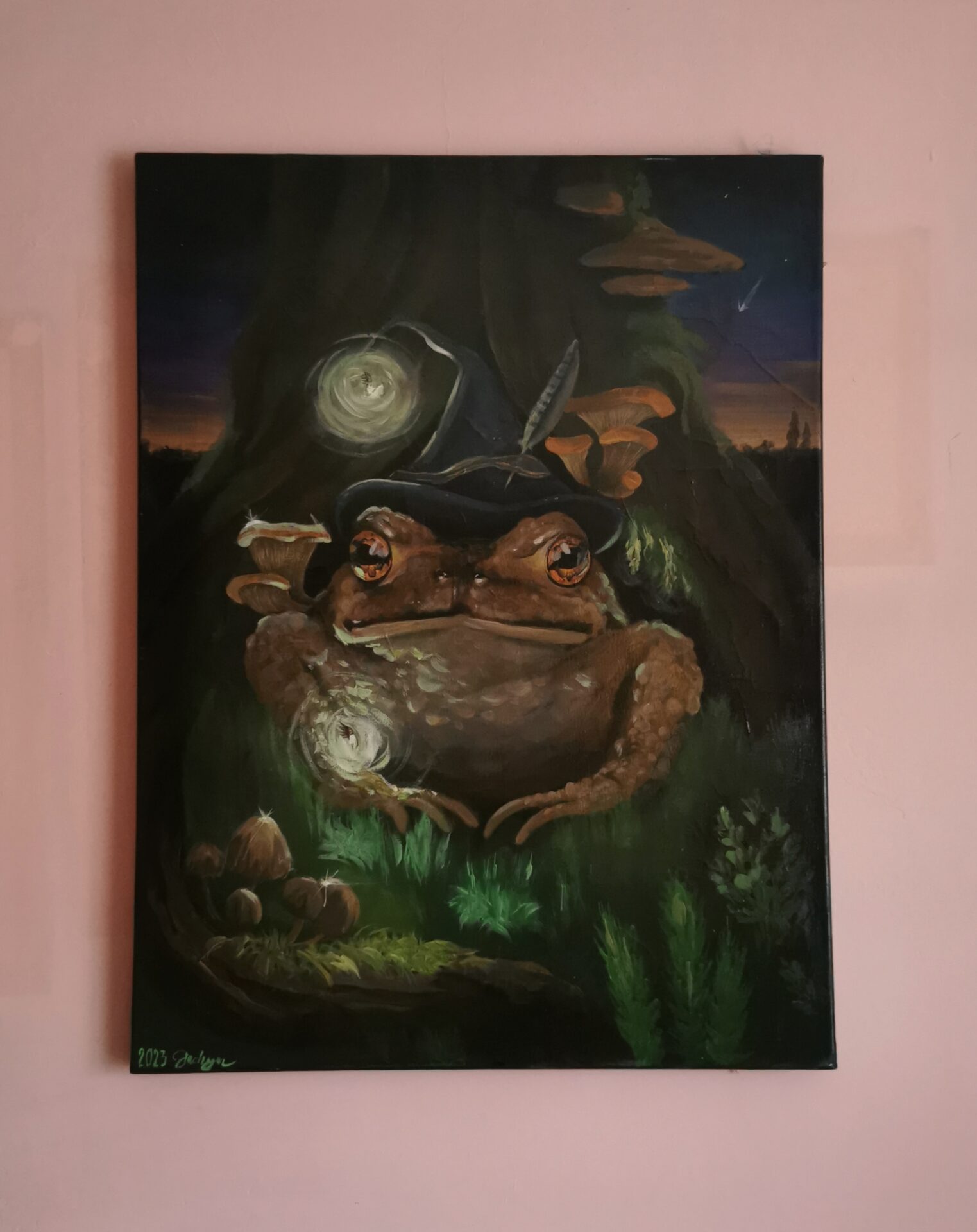 Obraz powstawał na przestrzeni kilku miesięcy. Inspirowany przyrodą, nocnym niebem oraz tajemniczością wieczornych łąk i pól