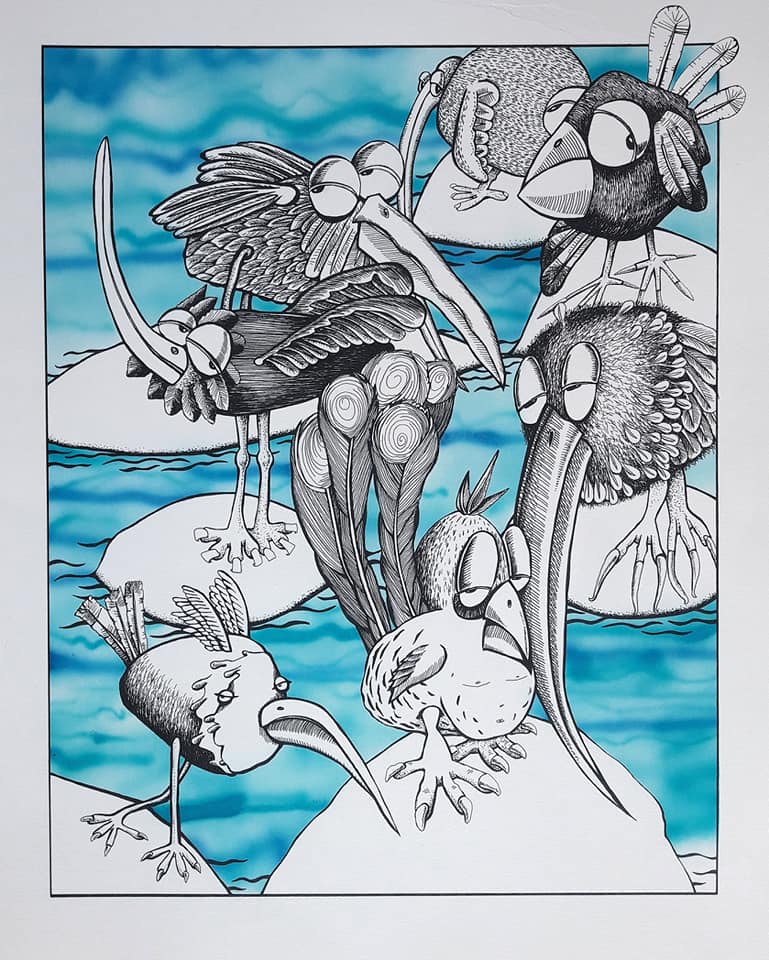 Rysunek tuszem, analogowy bez użycia komputera. Precyzyjna kreska charakterystyczna dla autora. Rysunek na długo pozostaje w pamięci i zachęca do refleksji, zarówno nad treścią, formą, jak i techniką. Doskonała ozdoba wnętrza dla wymagającego konesera sztuki. Praca nad tym dziełem trwała kilka tygodni. Rysunki autora znajdują się w muzeach i kolekcjach prywatnych w Polsce, Czechach, Irlandii, Anglii, Palestynie, Iranie i Japonii. Praca oprawiona w aluminiową ramę ze szkłem.