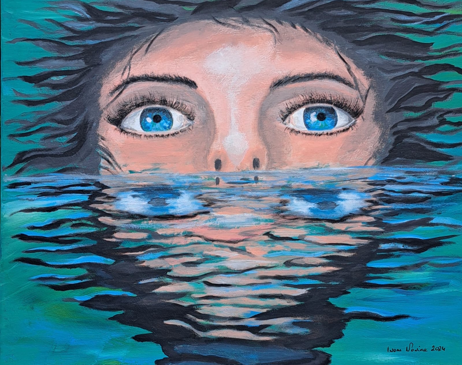 Obraz Bez wyjścia powstał pod wpływem nastroju. Wbrew tytułowi kobieta ma otwarte na przyszłość spojrzenie i jest to ten akcent, który ma pozytywny wydźwięk.