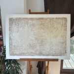 Obra strukturalny w brązowo beżowych kolorach. Obraz abstrakcyjny o strukturalnym podłożu. Oprawiony w ramę i zabezpieczony werniksem. Obraz o rozmiarach 70×100