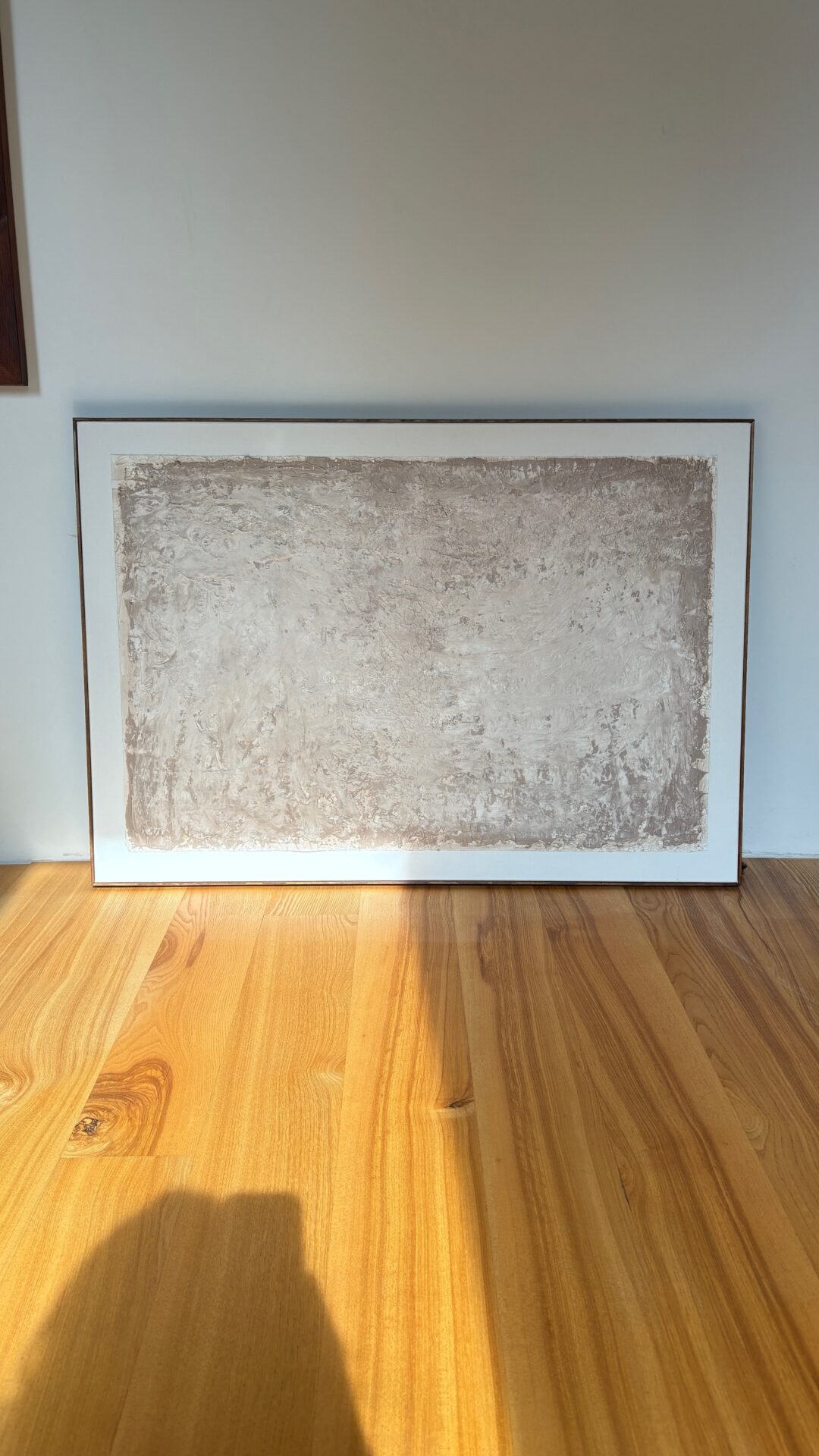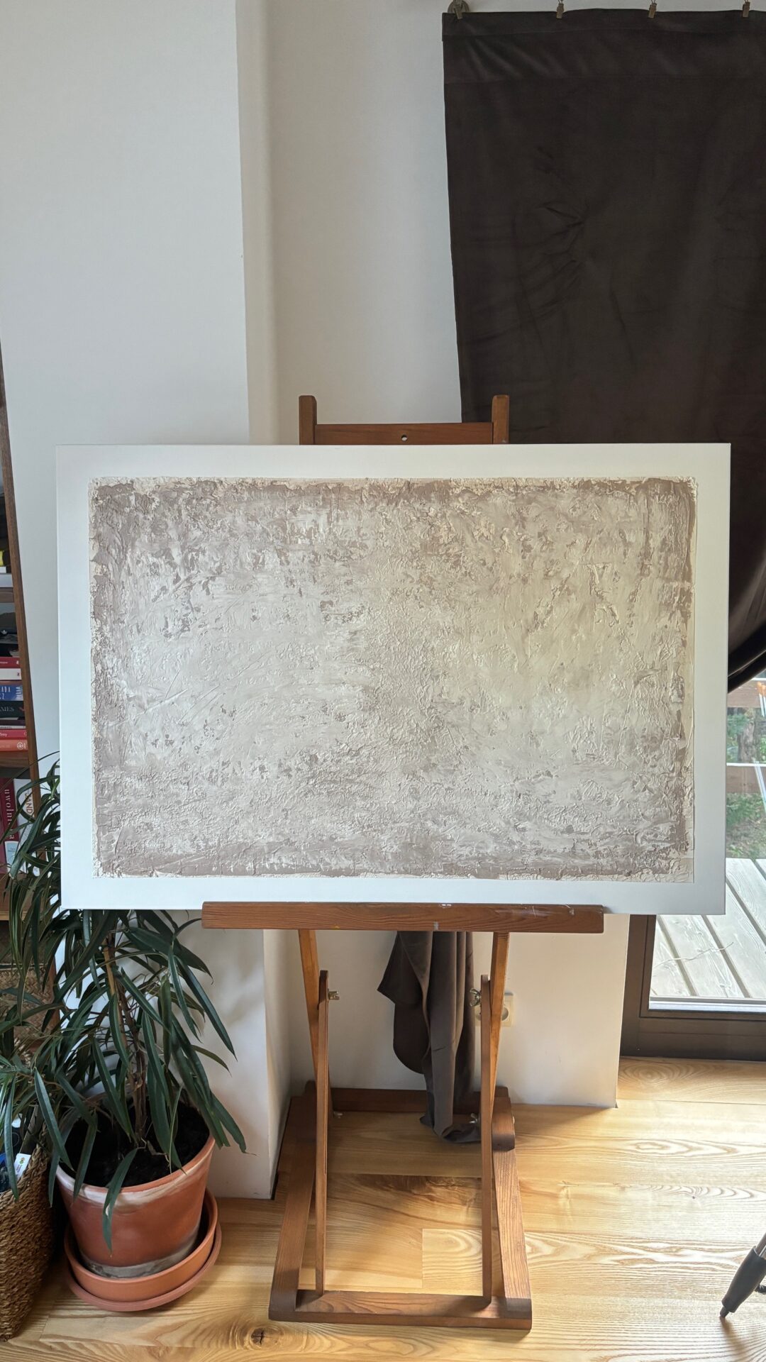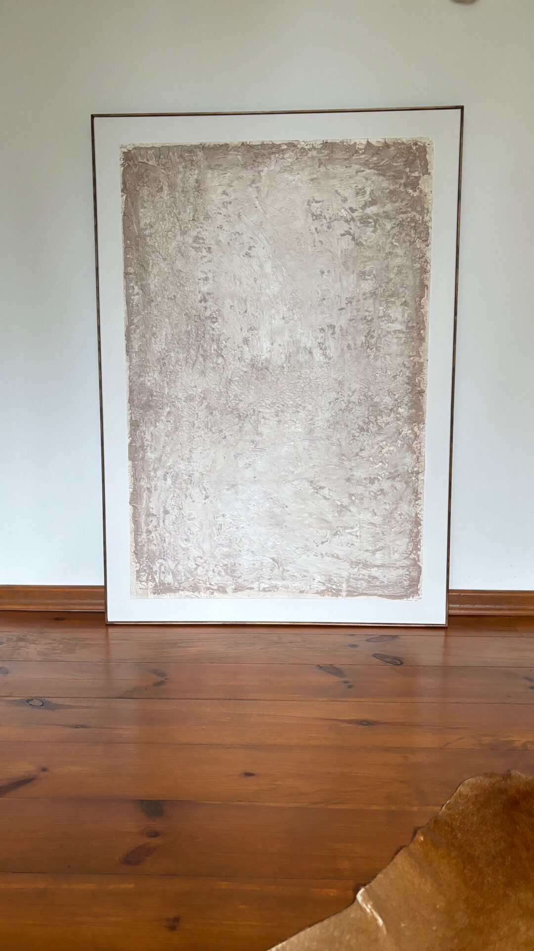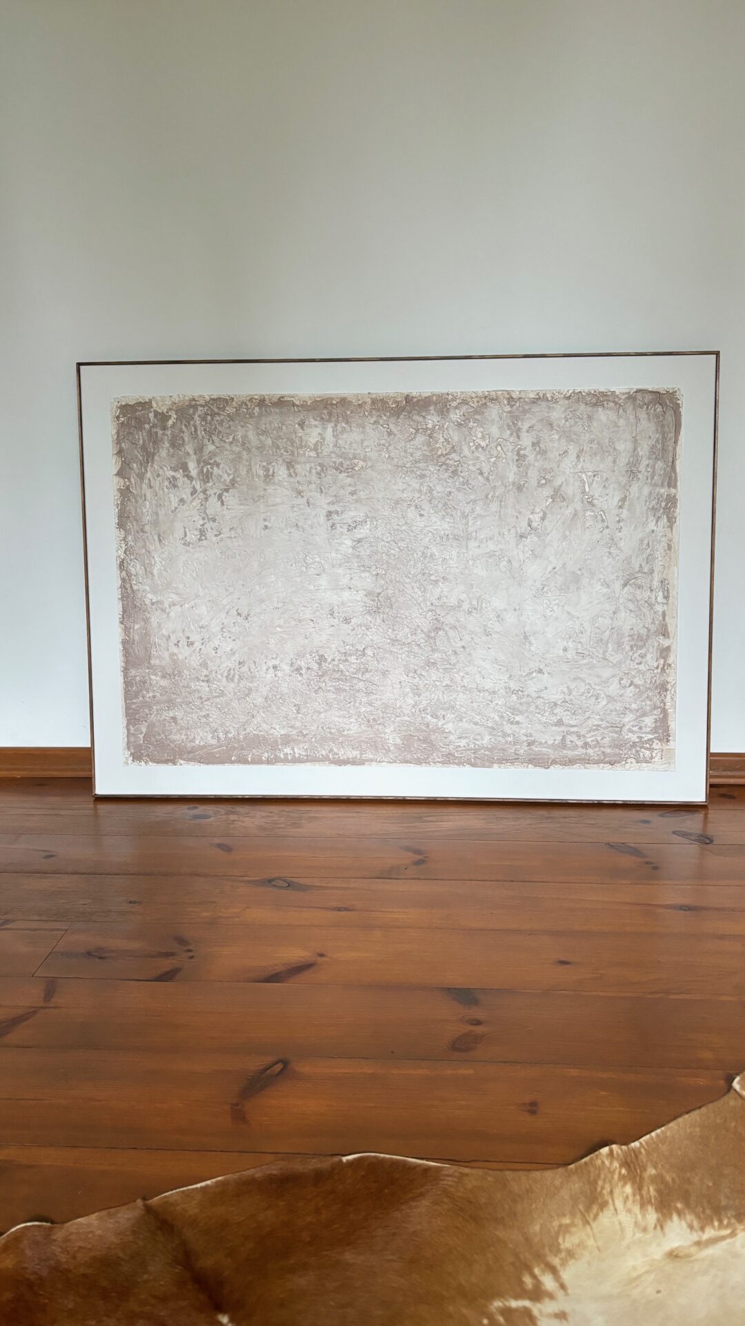 Obra strukturalny w brązowo beżowych kolorach. Obraz abstrakcyjny o strukturalnym podłożu. Oprawiony w ramę i zabezpieczony werniksem. Obraz o rozmiarach 70×100